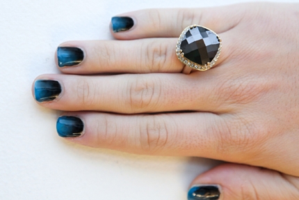 Tiếp theo, sơn vào khoảng trống trên móng một màu bóng sáng màu hơn. Lau sạch những chỗ bị rây ra, và sau đó xóay tròn trộn nhẹ hai màu với nhau.