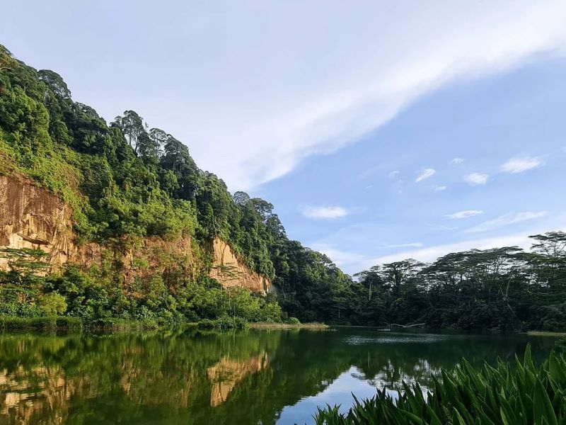Hồ Singapore Quarry nằm giữa Khu bảo tồn thiên nhiên Bukit Timah và Dairy Farm Nature Park. Từng là mỏ đá granite, nơi đây nay đã trở thành một hồ nước yên ả, được bao quanh bởi vách đá cao và thảm xanh rậm rạp. Sự kết hợp này tạo nên một khung cảnh vừa hoang sơ, vừa tĩnh lặng, gợi cảm giác như đang ở một vùng thiên nhiên xa xôi ngoài quốc đảo Singapore.