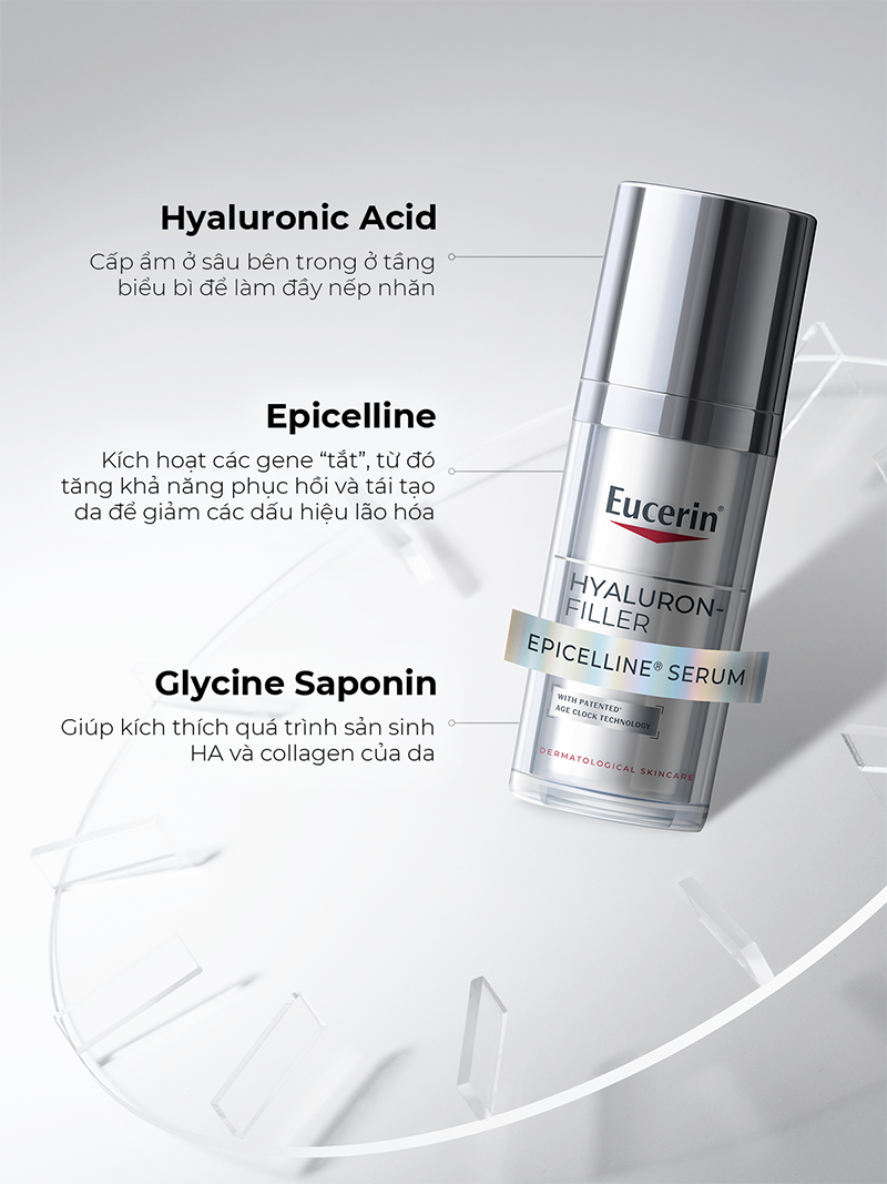 Sau 15 năm nghiên cứu chuyên sâu, Eucerin chính thức giới thiệu thành phần Epicelline trong Eucerin Hyaluron-Filler Epicelline Serum, với kiểm chứng lâm sàng cho thấy làn da có thể trông trẻ hơn đến 5 tuổi chỉ sau 4 tuần sử dụng.