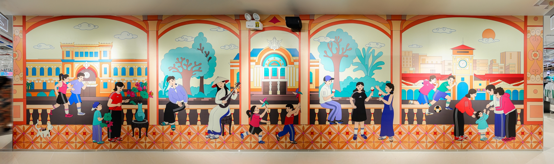 Điểm nhấn đặc biệt là yếu tố “Cảm hứng Bản địa” (Local Inspiration), tôn vinh tinh thần Việt trên một “Sân khấu Toàn cầu” (Global Stage). Thiết kế nội thất và các tác phẩm nghệ thuật sắp đặt trong cửa hàng lấy cảm hứng từ những biểu tượng đặc trưng của Tp. Hồ Chí Minh như chợ Bến Thành, Nhà thờ Đức Bà và nhịp sống sôi động của văn hóa đường phố, xe máy.