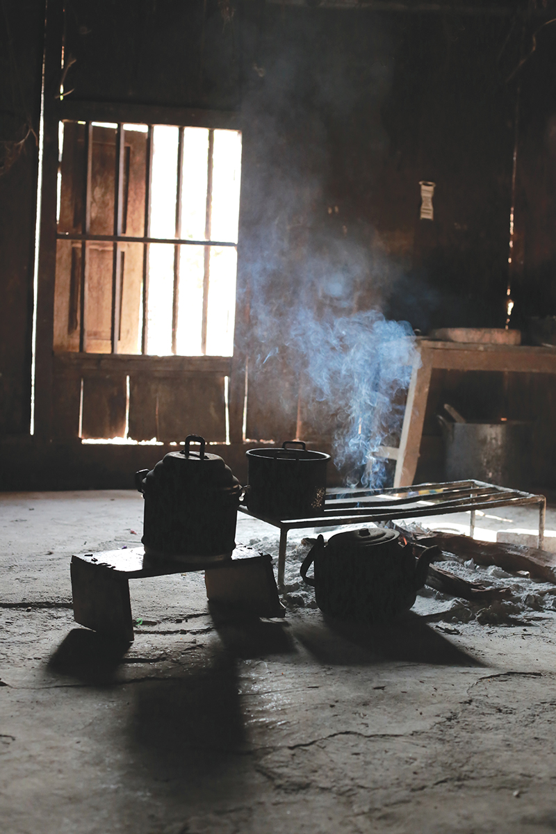 Tôi còn nhớ như in cả cái lần mình reo lên giữa chợ phiên Y Tý khi khám phá ra củ niễng – một loại nguyên liệu chỉ xuất hiện vào mùa đông ở vùng cao. Thân trắng, giòn ngọt, củ niễng đem xào với thịt lợn hoặc thịt trâu gác bếp cho mùi vị thơm lừng. Chúng tôi mua củ niễng cùng vài nguyên liệu mang theo vào bản San của người Hà Nhì ở Bát Xát để nấu bữa cơm mời bà con. Những nguyên liệu người địa phương tự tay hái từ rừng luôn mang vẻ đẹp thô mộc: rau rừng bó bằng dây lạt hoặc sợi mây, không đều nhưng chắc; củ niễng xếp thành từng bó nhỏ, buộc bằng dây chuối khô. Tối hôm ấy, giữa núi rừng không ánh đèn, bữa cơm được nấu từ sớm, trẻ con ríu rít quanh bếp lửa, tiếng cười vang trong gian nhà gỗ. Khi trời tối hẳn, mọi người ngồi quây quần, cùng ăn cơm dưới bầu trời đầy sao.