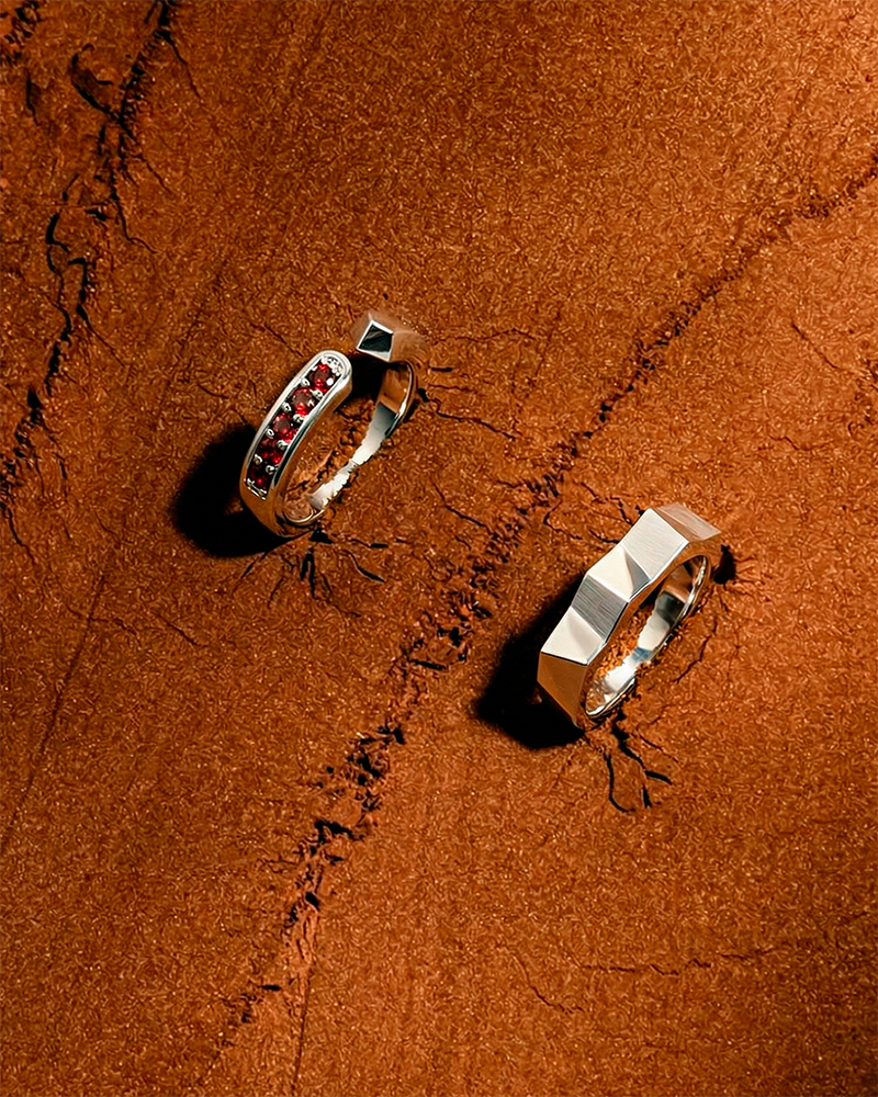 Tinh thần unisex được thể hiện rõ nét trong từng thiết kế của Lava U khi kết hợp giữa đường cắt uyển chuyển và khối nham thạch góc cạnh, điểm xuyết chi tiết đá đỏ tượng trưng cho dòng dung nham đang chảy. Yếu tố này không chỉ tạo điểm nhấn thị giác mà còn mang ý nghĩa về nguồn năng lượng yêu luôn âm ỉ, bền bỉ. Thiết kế hở, phóng khoáng giúp trang sức dễ dàng thích ứng với nhiều phong cách – từ áo phông oversize, streetwear cá tính cho đến sơ mi tối giản hay những set đồ mang hơi hướng thời trang cao cấp.