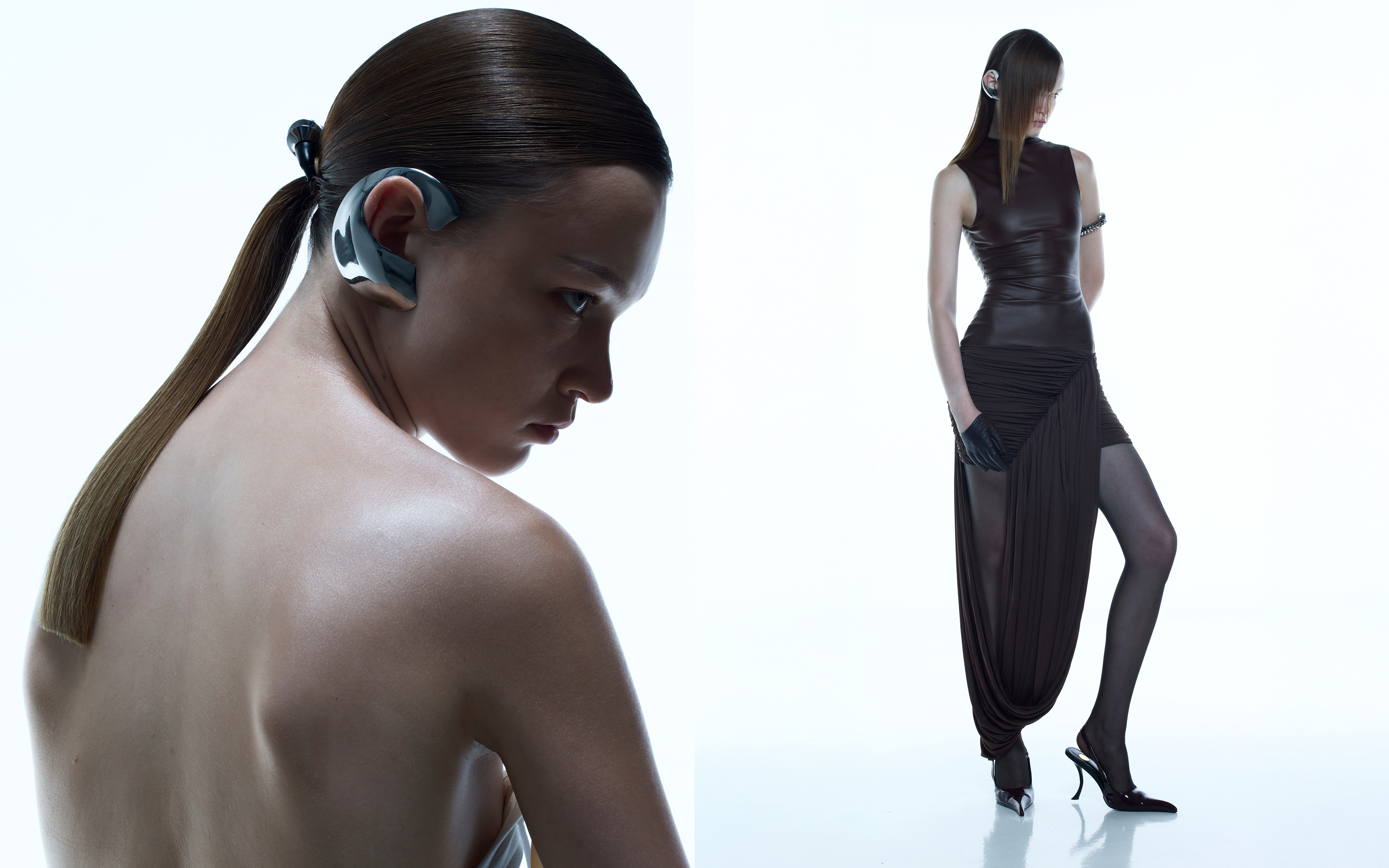 Song hành cùng màu sắc, chất liệu trong “Synthesis” cũng trở thành một thứ ngôn ngữ của sự hợp thể. Tulle mong manh đối thoại cùng da chắc khỏe, satin bắt nhịp với twill, lông thú nhân tạo nâng đỡ hơi ấm của kim loại lạnh. Những bề mặt mang tính ba chiều tạo ra kết nối, mở rộng điểm nhìn và phá vỡ giới hạn thị giác. Vải vóc đan xen giữa sự căng tràn và buông hờ, giữa kỷ luật và buông bỏ, đưa cảm quan thị giác vượt ra ngoài khuôn khổ cơ thể, đến với một trải nghiệm cảm xúc đa tầng và đầy đối thoại.