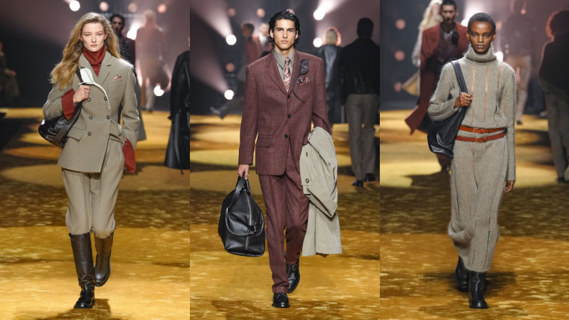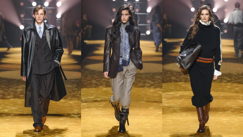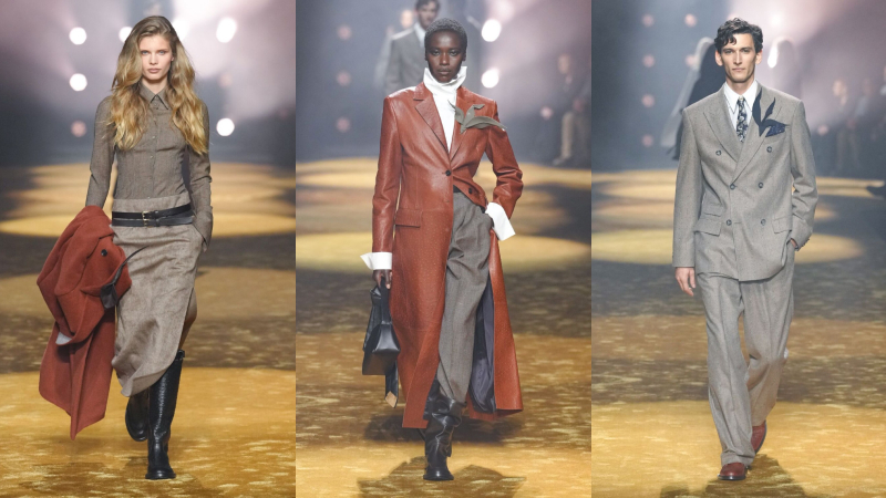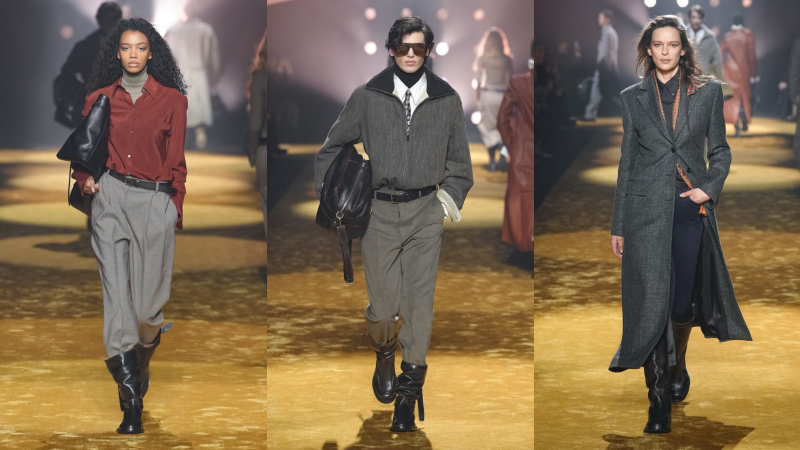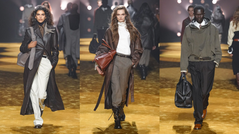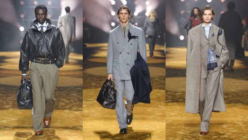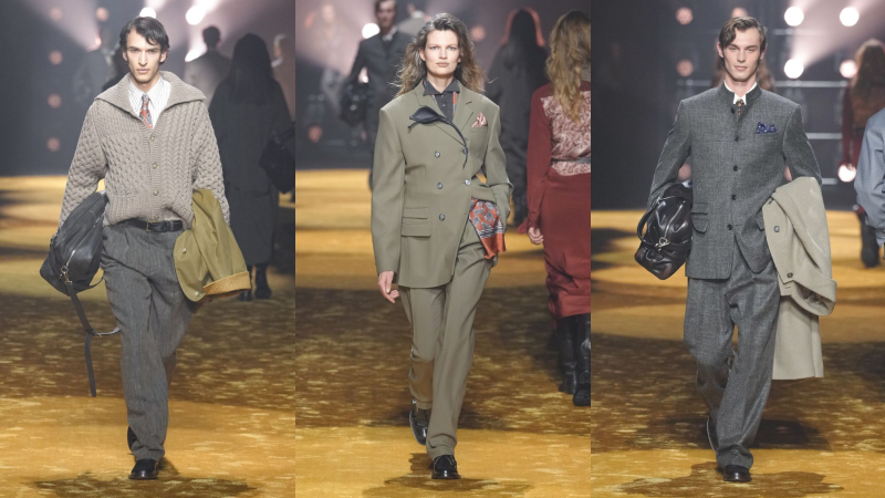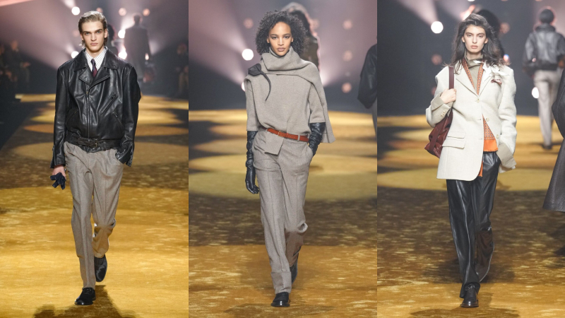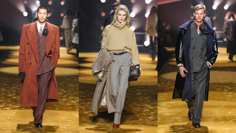 Phối lớp nhưng không kiềm hãm chuyển động, áo blouson và anorak bằng da khoác ngoài sơ mi và cà vạt, đặt sự chỉn chu cạnh yếu tố đời sống. Suit tách bộ (mặc riêng áo và quần) được nới phom, tăng độ đầy đặn.