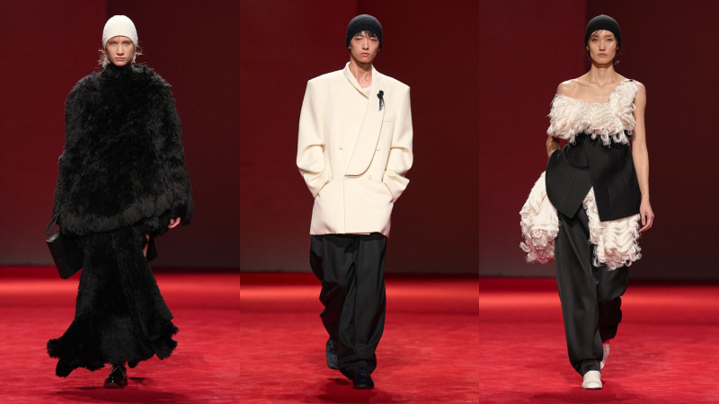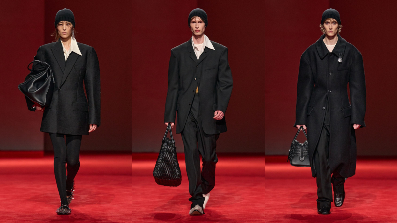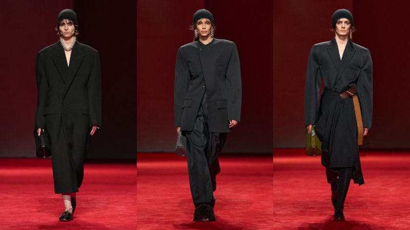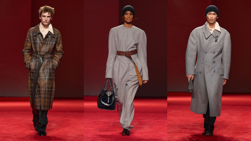 Buổi trình diễn tại trụ sở thương hiệu trong khuôn viên Palazzo San Fedele, mở màn trên thảm đỏ bằng một đoàn suit tông trung tính, phom vai rộng. Điều đó gợi nhớ giai đoạn “Bottega mới” dưới thời người tiền nhiệm Matthieu Blazy, nơi cấu trúc may đo và tỷ lệ cơ thể được đặt làm trọng tâm. Nhưng chính ở nửa sau của bộ sưu tập Thu Đông 2026, câu chuyện mới thực sự chuyển hướng. Sàn diễn dồn ánh nhìn vào những thiết kế áo khoác giữ vai trò trung tâm: phom dáng được đẩy lên cao trào, chất liệu được xử lý để tạo độ sâu và từng chuyển động của vạt áo trở thành điểm nhấn thị giác.