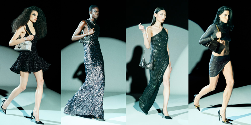 Các thiết kế áo khoác mang kết cấu phong phú nhưng vẫn giữ độ nhẹ lý tưởng như peignoir (áo choàng mỏng nhẹ) với những mảng shearling kết hợp cùng lụa, lông dê và lông vũ, liên kết thành họa tiết phức hợp trên nền voan trong suốt. Bên cạnh đó, tủ đồ tiệc tùng hướng đến sự gợi cảm tinh tế với loạt trang phục lấy cảm hứng từ nội y, phối cùng áo blouson lụa, chân váy mini drape đi kèm áo đồng bộ, hay những chiếc đầm tối giản bằng jersey và chiffon.