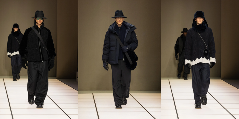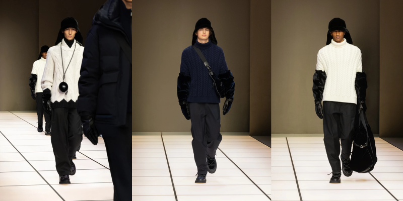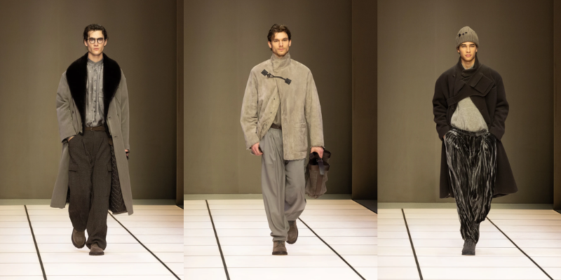 Song song với chủ đề về sự biến đổi, tinh thần cân bằng được duy trì xuyên suốt bộ sưu tập thông qua cách sắp đặt các chất liệu cạnh nhau: da bề mặt lì, len cashmere chải mịn và len mềm cùng tồn tại trong một hệ thống thống nhất. Tiếp nối tinh thần ứng dụng của người sáng lập Giorgio Armani, bộ sưu tập cũng giới thiệu các mẫu túi tote ngoại cỡ và túi đeo chéo, cùng thắt lưng với khóa mang đồ họa, mũ vành rộng và kính mắt tối giản.