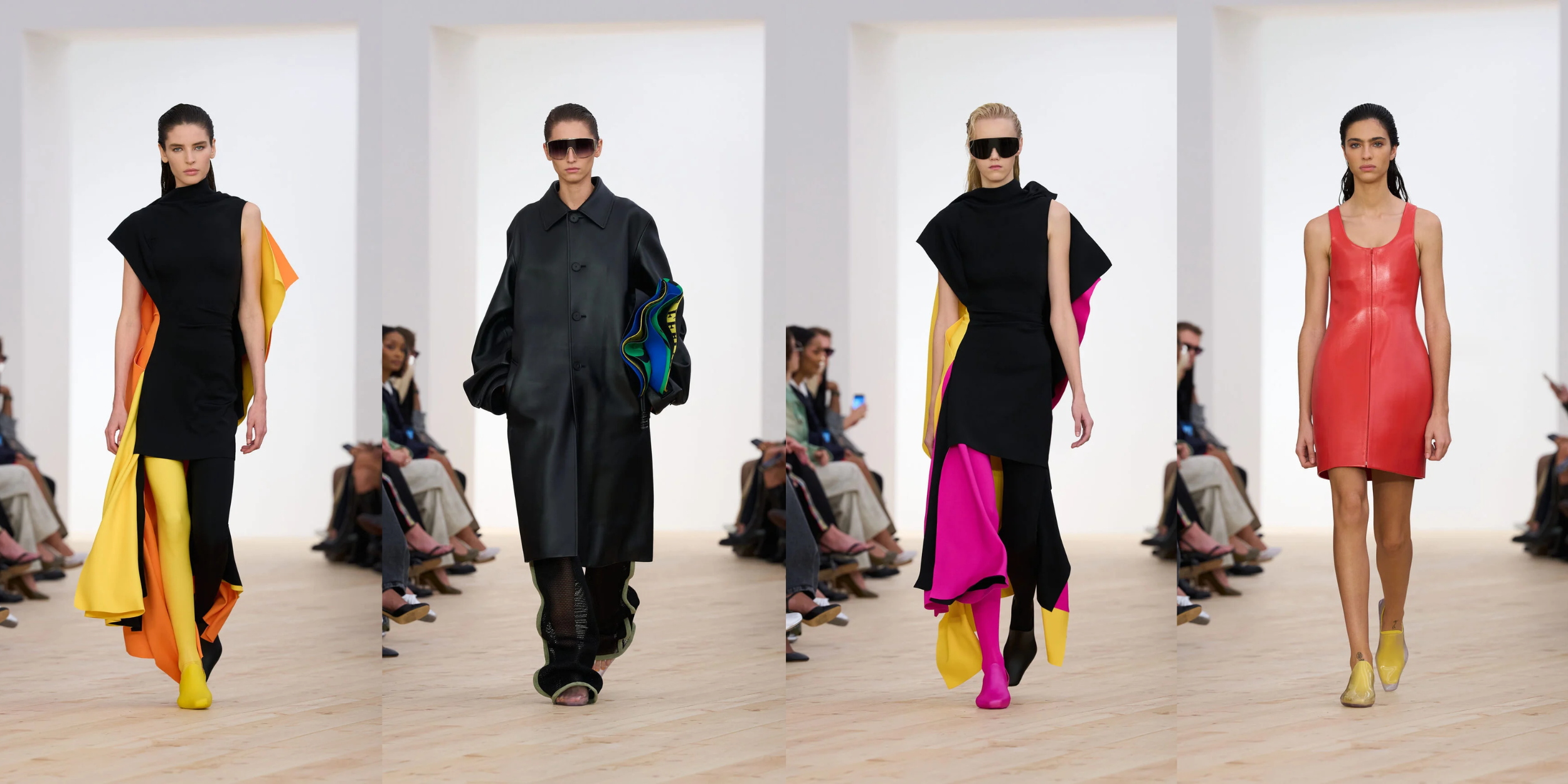 Cao trào của buổi trình diễn là khi chất liệu da vươn mình thành những tác phẩm điêu khắc sống động. Áo khoác nhiều lớp ánh sáng hắt lên bề mặt như kim loại lỏng, váy cắt laser tạo nên những hoa văn gần như siêu thực. Lúc này, sàn diễn thay vì trở thành sân khấu của sự phô trương kỹ thuật, tất cả vẫn giữ được tinh thần “mặc được” như một lời hứa hẹn rằng LOEWE sẽ tiếp tục sống trong đời thường, không chỉ trong viện bảo tàng thời trang.