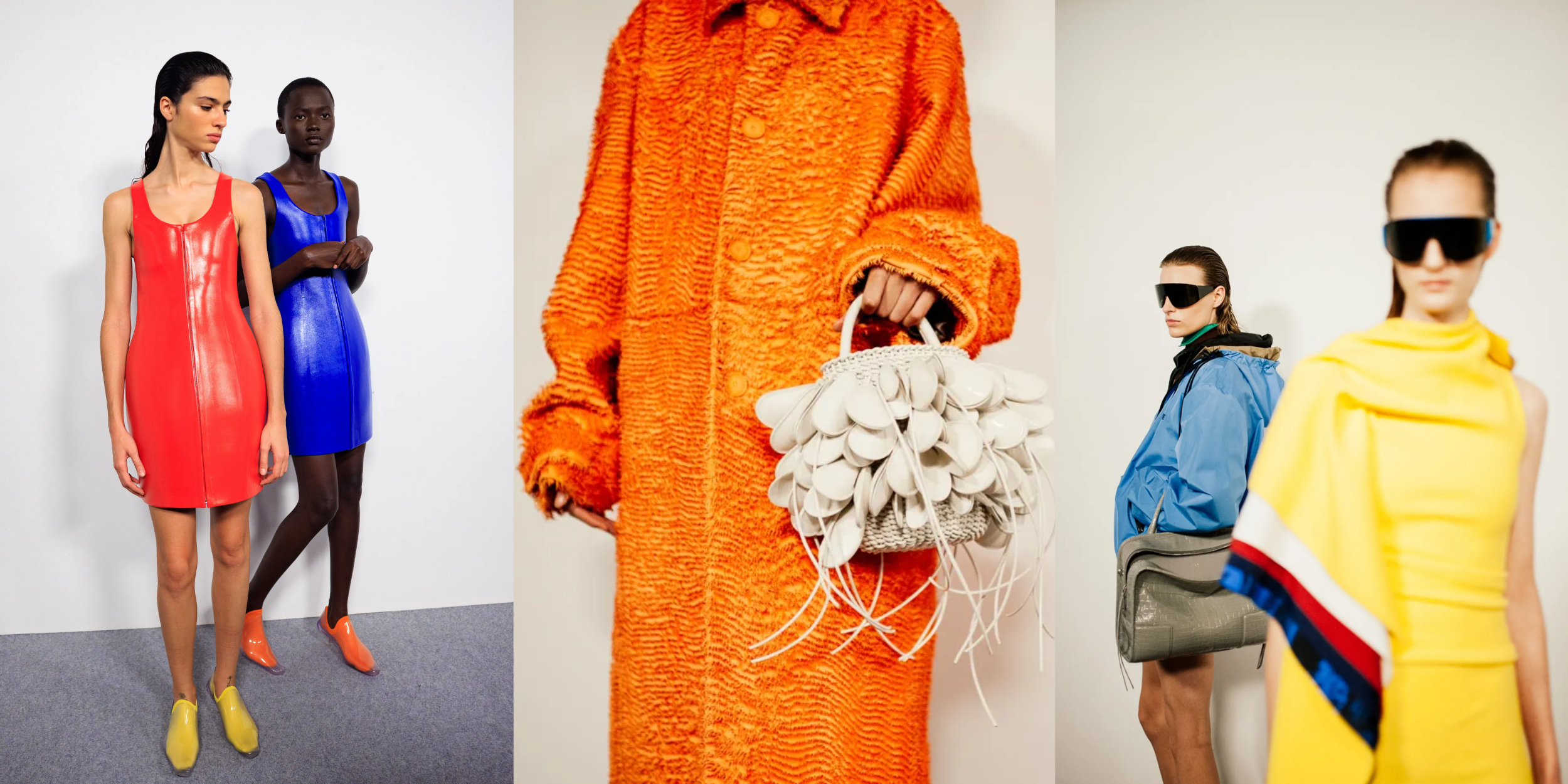 Bảng màu của BST chào sân của bộ đôi nghiêng về gam màu rực rỡ như màu vàng tươi, đỏ thẫm, xanh ngọc, cam đậm, cho tới những khoảng lặng nhẹ nhàng với be và xám trầm. Ở phương diện thiết kế, yếu tố cấu trúc được khai thác mạnh mẽ trên những chiếc áo blazer bất đối xứng, váy maxi kẻ sọc mềm rủ, áo khoác ngoại cỡ kết hợp quần da ngắn. Tất cả đã tạo nên một nhịp điệu thị giác giàu tầng lớp, giữa chất sáng tạo bay bổng và tính ứng dụng trong đời sống.