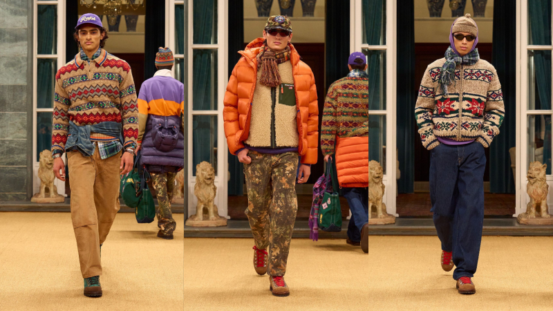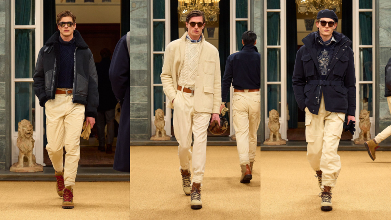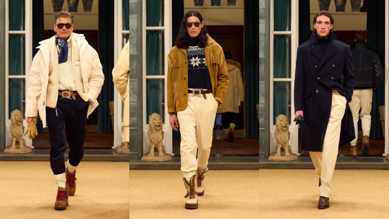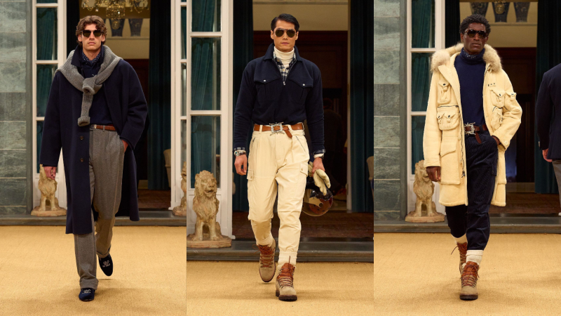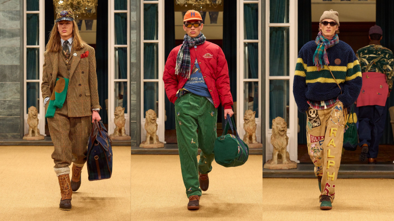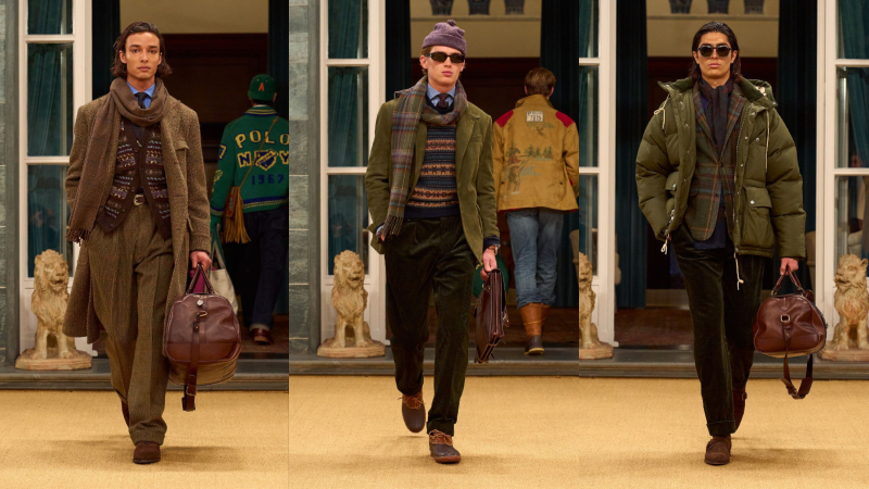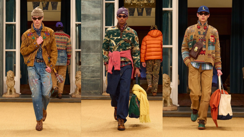 Yếu tố tự sự hiện diện rõ rệt trong bộ sưu tập. Các “nhân vật” trong đời sống hiện lên sống động: đồ theo phong cách bohemian với quần jeans vấy sơn và áo khoác da; nhóm trang phục của người trượt tuyết ván, hay Ivy League được diễn giải qua đồ dệt kim và may đo. Phụ kiện như túi cotton cỡ lớn đựng đầy áo len, bình đựng kim loại, nhấn mạnh ý niệm về những người đàn ông được định nghĩa bởi cách họ sống. Tinh thần này trùng khớp với tuyên bố bằng văn bản của chính Ralph Lauren, khi ông mô tả bộ sưu tập như một khảo sát về cá tính và phong cách cá nhân.