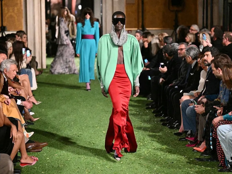 Buổi trình diễn kết thúc bằng một diện mạo mang tính biểu tượng: chiếc đầm đỏ hở lưng, điểm xuyết một sợi dây chuyền vàng mảnh mai chạy dọc theo sống lưng. Thiết kế này là sự tôn vinh về mặt kỹ thuật lẫn cảm xúc đối với màu đỏ Valentino- màu sắc từ lâu đã định hình bản sắc của thương hiệu Ý. Đối với Alessandro Michele, màu đỏ là một màu sắc hấp dẫn nhưng cũng rất phức tạp để tạo kiểu với nó. Điều thú vị là nó làm anh nhớ đến chiếc áo sơ mi đỏ unisex thắt nơ đã đánh dấu cho buổi trình diễn đầu tiên của anh tại Gucci.