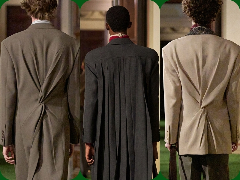Thay vì phá vỡ những quy tắc truyền thống của Valentino, bộ sưu tập Thu Đông 2026 lại hé lộ sự hài hòa đáng kinh ngạc giữa gu thẩm mỹ của Alessandro Michele với vốn từ vựng thẩm mỹ lịch sử của thương hiệu Ý. Nhà thiết kế đã tiếp cận kho lưu trữ với lòng tôn kính, nhấn mạnh tính liên tục hơn là sự đứt đoạn. Một trong những dấu ấn dễ nhận biết nhất về triết lý thiết kế của Valentino Garavani là sự chú trọng đến phần lưng của trang phục. Alessandro đã tái hiện sự tỉ mỉ này của Garavani: những chiếc áo khoác may đo được điểm xuyết bằng các nút thắt và nếp gấp dạng điêu khắc.