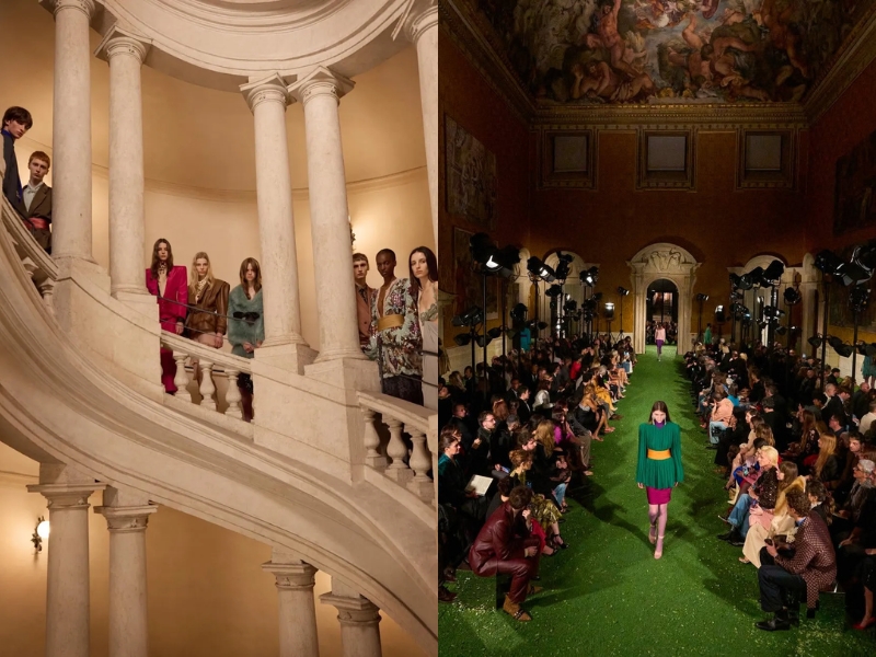 Địa điểm tổ chức buổi trình diễn Valentino Thu Đông 2026 là cung điện Palazzo Barberini nổi tiếng với những cầu thang tráng lệ và trần nhà trang trí công phu. Đây là nơi giao thoa giữa các phong cách kiến trúc và sự cải tạo đến từ nhiều thế kỷ khác nhau. Cấu trúc độc đáo này của cung điện đã trở thành nguồn minh hoạ trực quan cho ý tưởng thiết kế của Alessandro Michele. “Thời trang cũng có thể được hiểu như một trường lực đối lập cùng tồn tại trong và trên cơ thể. Trang phục không bao giờ chỉ là một bề mặt trang trí đơn thuần: nó là một công cụ tổ chức cuộc đối thoại giữa kỷ luật và ham muốn, giữa chuẩn mực xã hội và cử chỉ cá nhân, giữa sự thuộc về và sự dư thừa”, nhà thiết kế diễn giải về ý tưởng của mình.