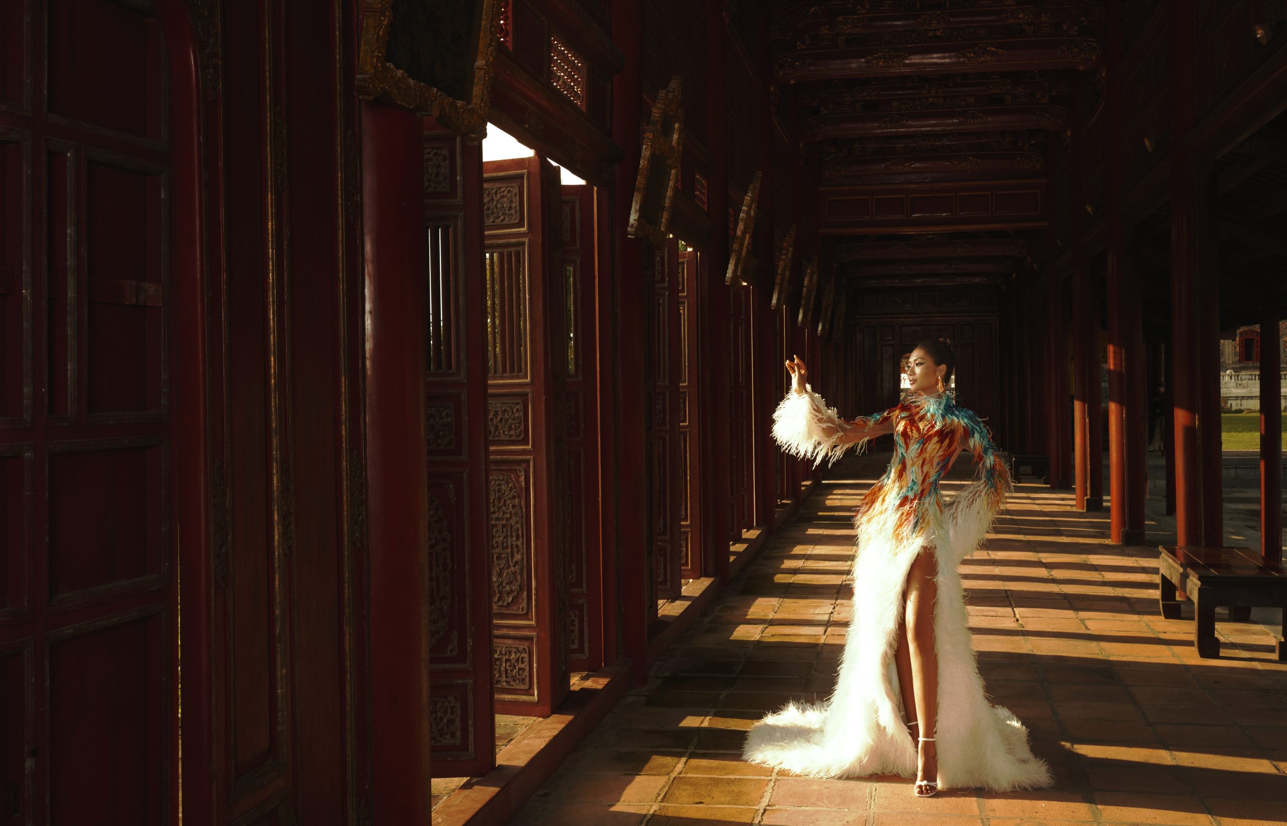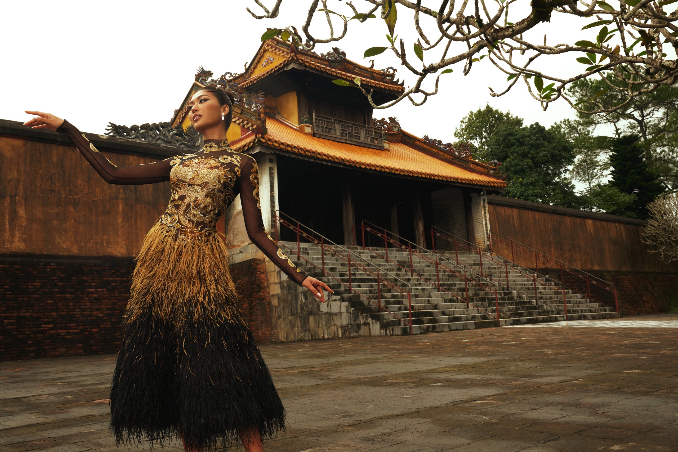Trở lại Huế với một BST Thu Đông, Lê Thanh Hòa chọn cách đối thoại trực tiếp với di sản. Cổng Ngọ Môn, chứng nhân của lịch sử và thời gian, trở thành bức họa cho câu chuyện về sự hồi sinh, nơi thời trang hòa vào nhịp thở của không gian văn hóa lâu đời.