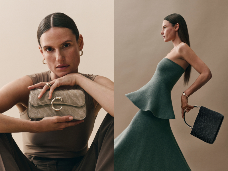 Được tạo nên từ những hạt cườm thêu tay trên nền vải nhung mịn, họa tiết đốm báo của dòng Panthère C de Cartier mang lại hiệu ứng mềm mại, gợi cảm giác như chạm vào lớp lông của loài báo. Trên phiên bản Panthère Double, Cartier chọn sợi len thêu nổi trên nền da có họa tiết dập, tạo nên hiệu ứng chồng lớp và chiều sâu, khiến bề mặt túi như chuyển động dưới ánh sáng. Còn trên chiếc C de Cartier, hai chữ cái lồng ghép trứ danh của Maison được thêu bằng sequin, phản chiếu ánh sáng mỗi khi chuyển động.