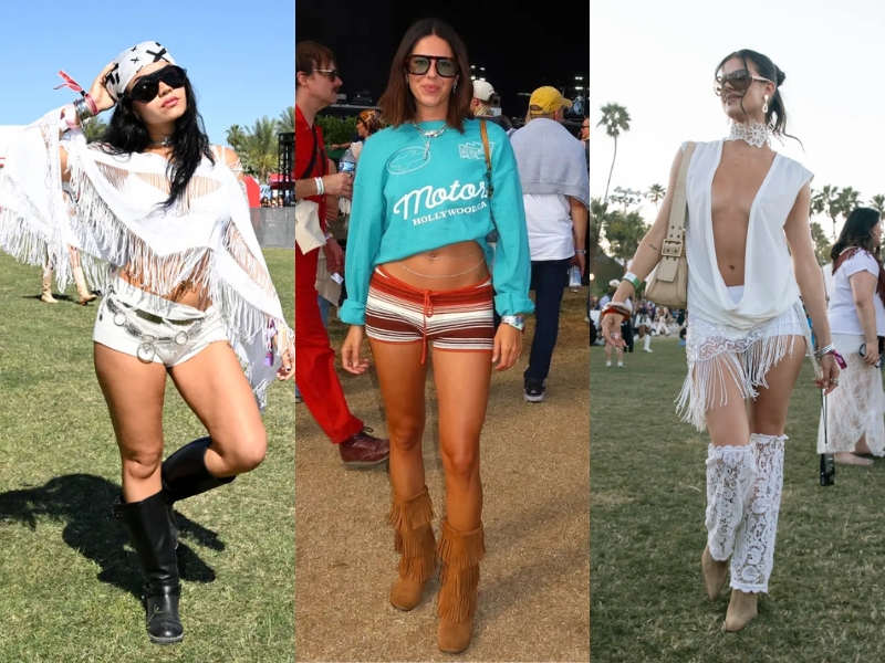 Với thời tiết nắng nóng của mùa hè, quần soóc đã trở thành kiểu dáng cơ bản mà ai cũng có. Nhưng chiếc quần siêu ngắn thì lại là một câu chuyện khác: táo bạo, quyến rũ và mát mẻ hơn rất nhiều. Chính nhờ những đặc điểm đó mà nó đã trở thành “ngôi sao thời trang” của Coachella năm nay. Kiểu quần dệt kim mang lại sự thoải mái, quần denim thì năng động, trong khi quần soóc da siêu ngắn lại tạo điểm nhấn cá tính cho mọi trang phục. Khi phối đồ với quần siêu ngắn, bạn nên cân nhắc kỹ độ dài của áo để đảm bảo sự hài hoà cho tổng thể.