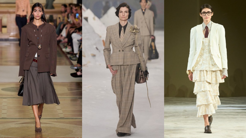 Để theo đuổi phong cách Poetcore mà vẫn giữ được sự tinh tế và chuẩn mực của một quý cô, sự thấu hiểu về tỷ lệ, chất liệu và màu sắc là yếu tố kiên quyết giúp bạn tách biệt khỏi những trào lưu ăn mặc hời hợt. Một bộ trang phục hoàn chỉnh có thể bắt đầu bằng sự giao thoa giữa nét kín đáo của một học giả và sự lãng mạn của một nghệ sĩ, chẳng hạn như kết hợp chiếc áo cổ lọ bằng len cashmere mỏng màu đen – biểu tượng vĩnh cửu của giới trí thức – cùng chân váy xếp ly dáng dài bằng lụa tơ tằm có độ rủ mềm mại. Khoác thêm một chiếc blazer phom rộng mang hơi hướng nam tính với những đường cắt sắc sảo sẽ giúp người mặc tái hiện hình ảnh của những nữ văn sĩ đầy phóng khoáng. Bảng màu trung tính như xanh đen, xám tro và nâu đất không chỉ tôn vinh nét hoài cổ mà còn tạo nên một khoảng lặng thị giác đầy chiều sâu, nhường chỗ cho vẻ đẹp của thần thái và sự điềm tĩnh tỏa sáng.