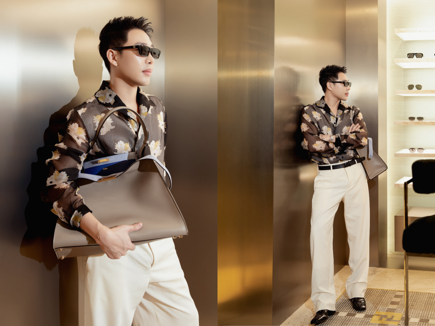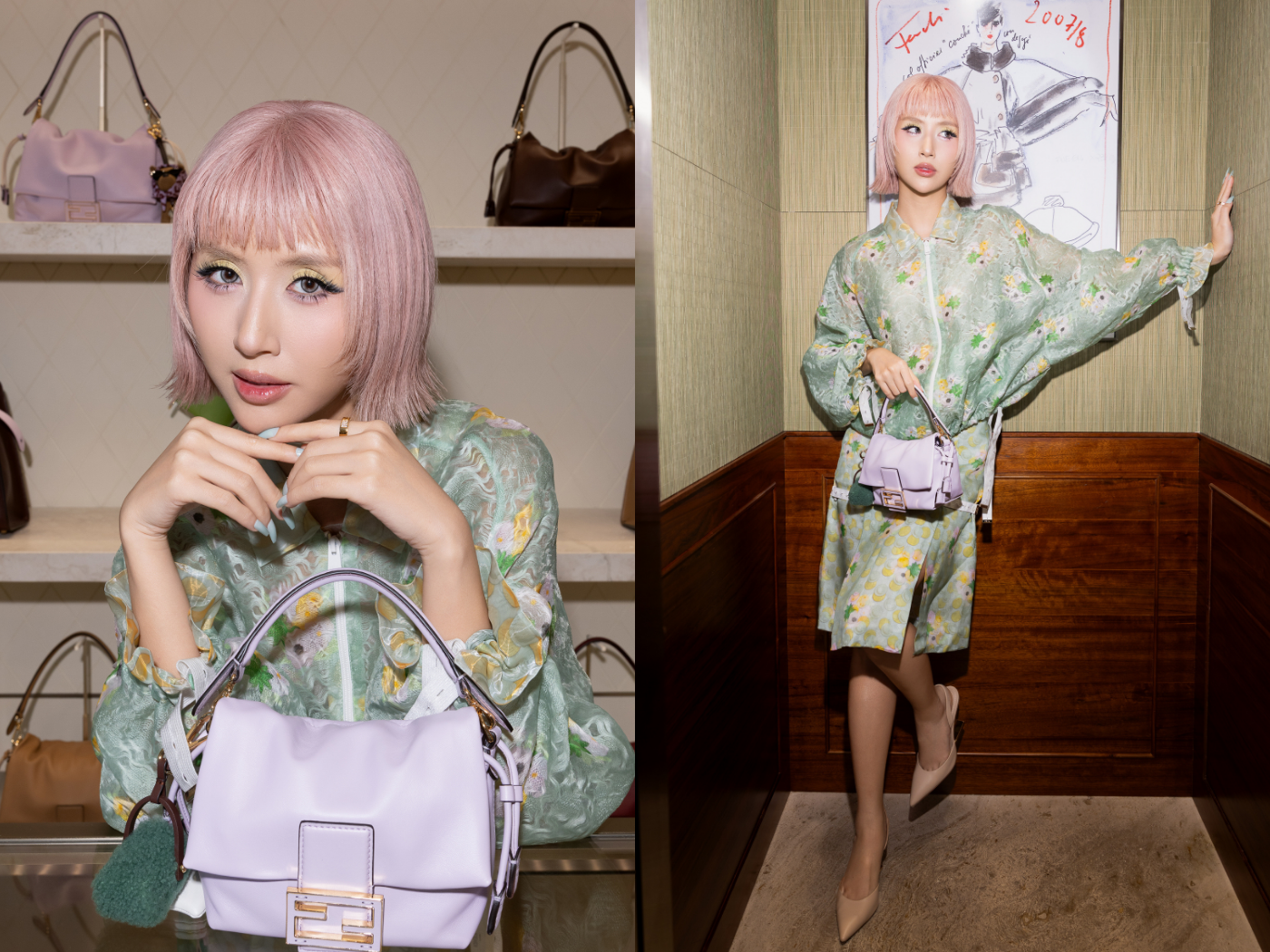 Siêu mẫu Thanh Hằng điểm thêm sắc cho không gian cửa hàng Fendi cùng bản phối color block với ánh hồng san hô từ áo khoác bomber phối chân váy, và sắc vàng của túi Fendi Peekaboo.Đông Nhi “nhuộm vàng” không gian cửa hàng cùng bộ trang phục thứ 47 từng xuất hiện trên sàn diễn Fendi Xuân Hè 2026 và túi Fendi Baguette “điểm hoa” nổi bật.Chiếc túi Fendi Peekaboo Mini bằng da, nổi bật với những rãnh hoa chính là lựa chọn của hoa hậu Hoàng Thùy Linh.Stylish Hoàng Ku lịch lãm cùng chiếc túi Fendi Way dáng boho.Không gian cửa hàng dường như được “tưới” thêm hoa với sự xuất hiện của fashionista Quỳnh Anh Shyn cùng chiếc túi Fendi Mamma Baguette ánh tím.Túi Fendi Way điểm thềm nét yêu kiều trong phong cách của diễn viên Diễm My 9x.Cũng phải lòng Fendi Way, fashionista Tú Hảo tự tin thả dáng cùng chiếc túi trong sắc xanh electric của thiết kế đầm sơ mi dáng suông.Cũng xuất hiện cùng sắc xanh electric nổi bật, diễn viên Hồ Thu Anh lại dành sự ưu ái cho chiếc túi Fendi Way.Trái ngược với các bản phối ngập sắc của đồng nghiệp, Quang Hùng MasterD chọn công thức “ton-sur-ton” xám cùng chiếc túi du lịch Fendi màu đen trên tay.