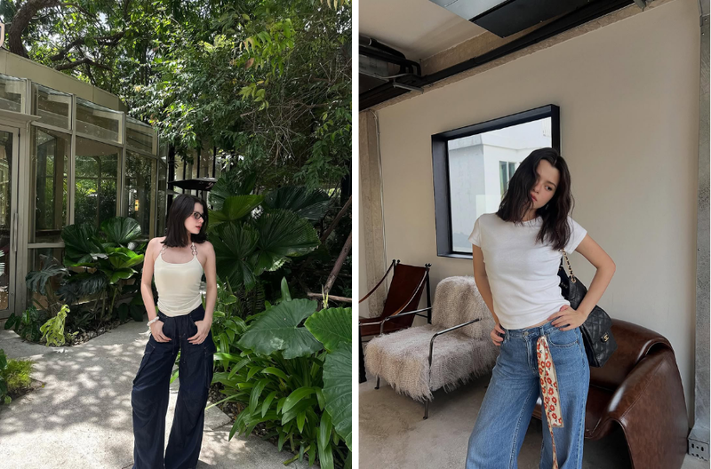 Là một nghệ sĩ trẻ thuộc thế hệ Z, dĩ nhiên, phong cách đời thường của Becky không thể thiếu những bản phối trẻ trung và gần gũi. Nữ diễn viên thường ưu tiên những món đồ cơ bản và dễ ứng dụng như áo hai dây, áo phông kết hợp cùng quần jeans, hay thỉnh thoảng là những chiếc áo được cách điệu cá tính, áo crop top đi cùng với chân váy ngắn năng động.