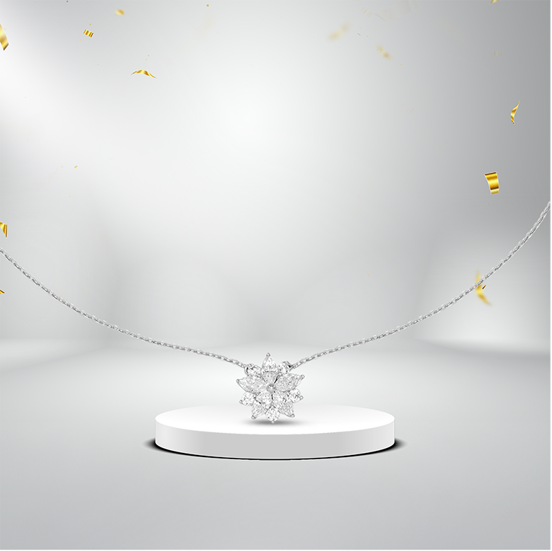 Với những cô gái ưa chuộng phong cách thanh lịch, dây cổ họa tiết hoa tuyết là sự lựa chọn khó có thể bỏ qua. Lấy cảm hứng từ bông hoa tuyết – biểu tượng của sự thanh khiết và vẻ đẹp tỏa sáng giữa mùa đông, thiết kế được tạo nên từ những viên đá cắt dáng marquise và round sắp xếp đối xứng đầy tinh xảo. Dưới ánh sáng, hiệu ứng lấp lánh đa hướng khiến chiếc dây cổ như một ngôi sao nhỏ nổi bật trên nền trang phục.