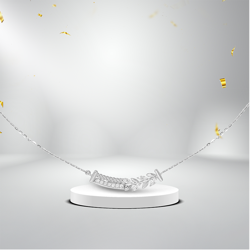 Dành cho những ai yêu thích sự mềm mại, dây cổ họa tiết lá mang đến nét duyên dáng tự nhiên. Thiết kế sở hữu những đường cong uyển chuyển như cành lá, từng phiến lá được đính đá ECZ nhỏ tinh xảo, tạo cảm giác chuyển động nhẹ nhàng và đầy sức sống.