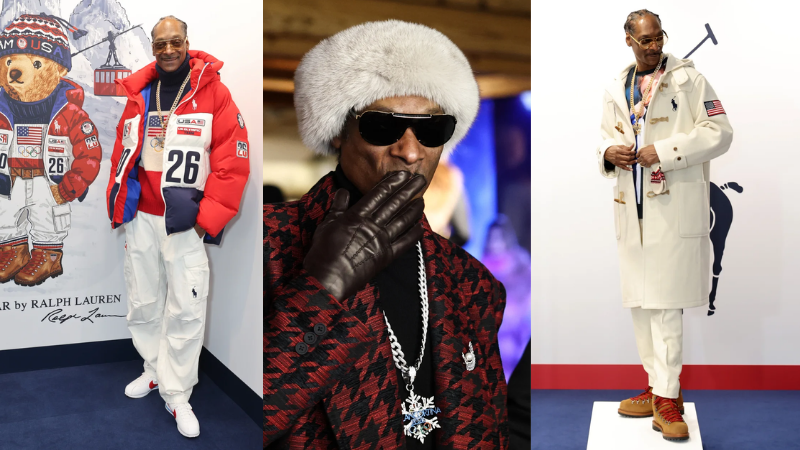 Trong các hoạt động bên lề, Snoop Dogg xuất hiện với nhiều lựa chọn trang phục khác nhau nhưng vẫn giữ cấu trúc lớp lang mùa đông với các thiết kế quá cỡ của Ralph Lauren và những bộ đồ trượt tuyết họa tiết, kết hợp kính râm và vòng cổ. Từ chiếc áo phao ba màu tại Milan đến bộ đồ liền thân họa tiết sao ở Cortina, nam rapper đem đến những dấu ấn thị giác không chỉ làm nổi bật mối liên kết với đội tuyển Mỹ mà còn biến trang phục cá nhân thành một công cụ truyền thông trực quan hiệu quả.