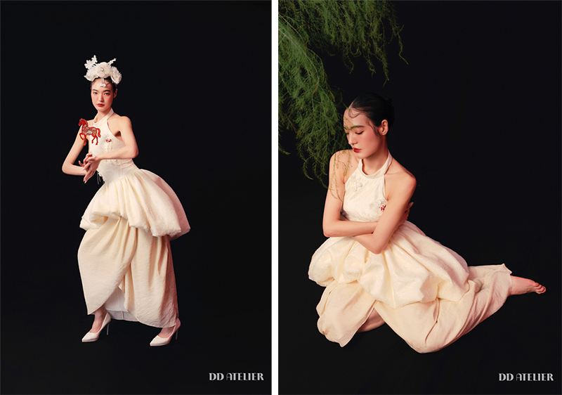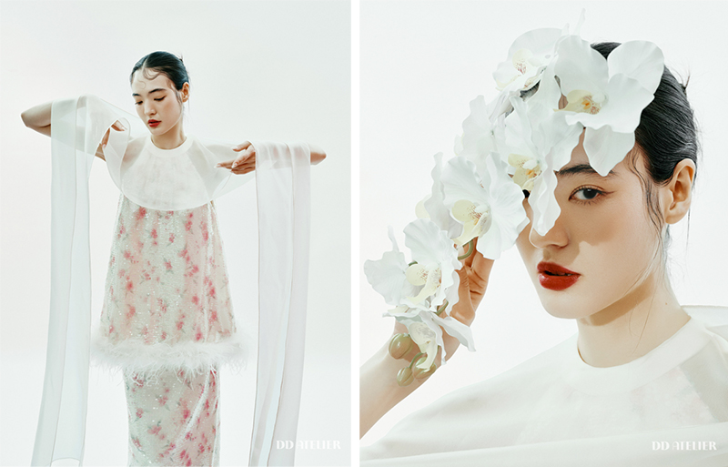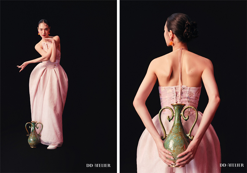 Nếu như kỹ thuật, chất liệu và phom dáng là ngôn ngữ hình thể để DD Atelier kể câu chuyện di sản, thì triết lý “sống cuộc đời rực rỡ” chính là linh hồn, là thông điệp cốt lõi mà thương hiệu muốn truyền tải. Từ nền tảng đó, thương hiệu phát triển một ngôn ngữ thời trang mạch lạc, phản chiếu hình ảnh nữ tính hiện đại qua góc nhìn châu Á rõ nét.