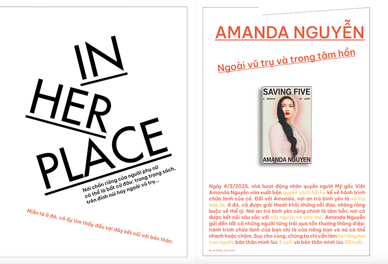 Số 294 với In her place lại khắc họa những nơi chốn riêng muôn màu muôn vẻ mà phụ nữ kiến tạo cho bản thân: hành trình 1.000 km qua bốn sa mạc khắc nghiệt của Thanh Vũ, căn nhà tối đa chủ nghĩa lưu giữ ký ức của Marielle Genet, hay vũ trụ vô tận nơi Amanda Nguyễn tìm thấy sự giải thoát khỏi nỗi đau. Mỗi nơi chốn ấy là một tuyên ngôn: tự chủ nghĩa là có quyền sở hữu không gian của riêng mình – không chỉ về mặt vật lý, mà còn là lãnh địa tinh thần.