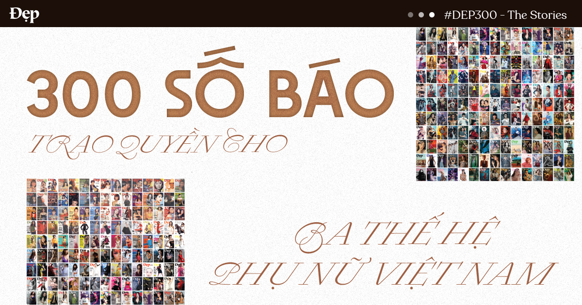 Cái đẹp là một khái niệm bao la và không ngừng biến động theo thời đại và nhịp đập của xã hội. Từ số báo đầu tiên 26 năm về trước, Đẹp đã cùng phụ nữ Việt Nam bước vào hừng đông của thiên niên kỷ mới với một sứ mệnh khắc ghi trong tên mình. 300 số báo cũng là ba thập kỷ Đẹp dẫn dắt cuộc đối thoại về cái đẹp thực thụ ở nhiều tầng ngôn ngữ, để từ đó trao quyền, soi chiếu và tôn vinh hành trình từ tự do, đến tự tin, rồi tự chủ của ba thế hệ phụ nữ Việt.