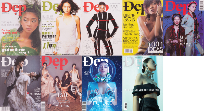 Chỉ kém “á quân” đúng 01 bìa Đẹp là Ngô Thanh Vân, một sao nữ đa-zi-năng khác của nền giải trí Việt. Trước khi tung những đòn cước đi vào lịch sử trên màn bạc, âm nhạc và chụp mẫu ảnh mới là hai lĩnh vực cô hoạt động năng nổ nhất thuở chập chững vào nghề. Gặt hái được những thành công nhất định ở hai sân chơi cũ, song một “cú hích” là cần thiết để Ngô Thanh Vân thực sự ghi danh vào bản đồ showbiz. Đúng lúc này, tác phẩm “Dòng máu anh hùng” xuất hiện và làm rung chuyển làng điện ảnh năm 2007, thiết lập danh xưng “nữ hoàng phim hành động Việt” của cô trong tiềm thức khán giả. 9 trang bìa Đẹp song hành với những dấu mốc trong sự nghiệp của Ngô Thanh Vân, nhưng có lẽ trang bìa giàu cảm xúc nhất phải nhắc đến hình ảnh “đả nữ” cùng giọt nước mắt lăn trên gò má ở Đẹp số 271. Đó là giọt nước mắt của một “con sói cô độc” rong ruổi trên con đường đưa dòng phim hành động Việt Nam vươn tầm quốc tế. Và dù khi ấy, cô vừa bước hụt bước lỡ nhịp với “Thanh Sói”, Đẹp vẫn khẳng định hành trình của “đã nữ” xứng đáng được tôn trọng và đề cao.