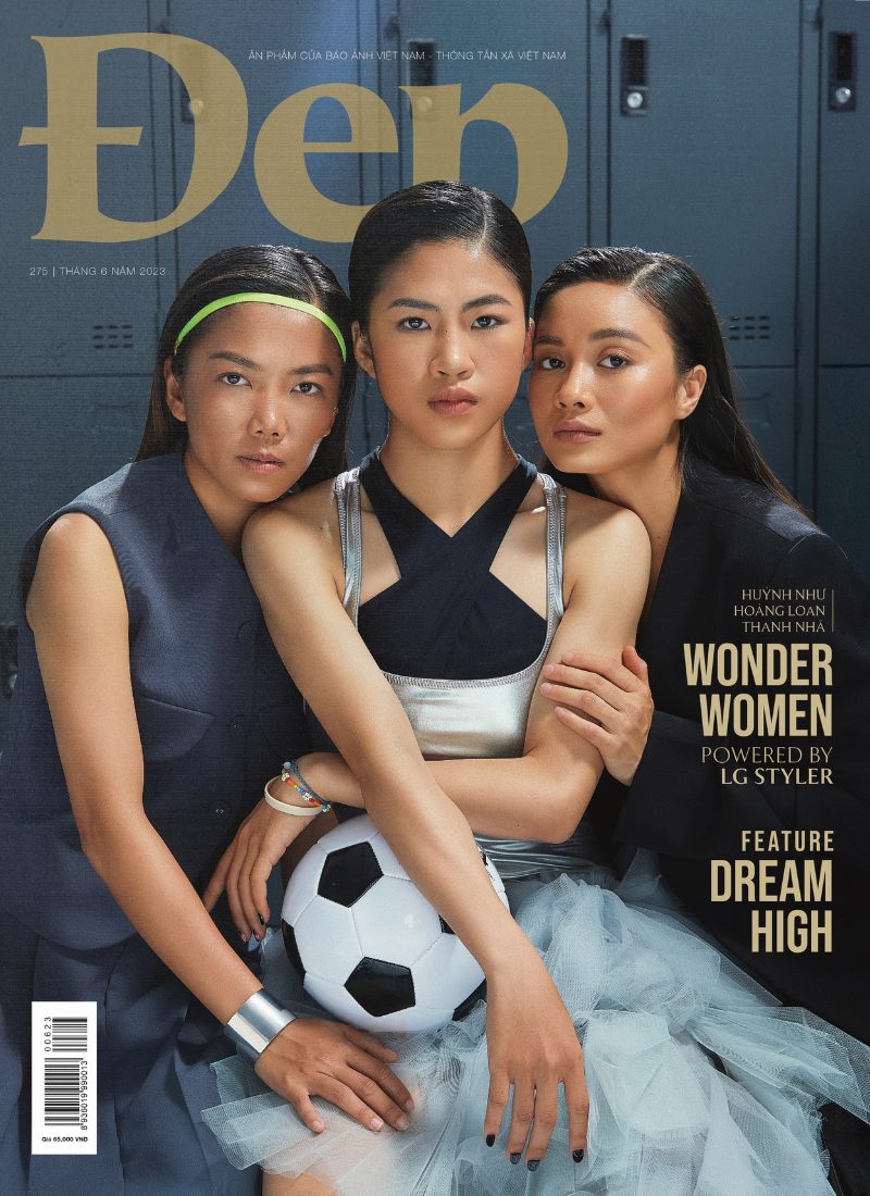 Tạo “địa chấn” trên sân cỏ là chưa đủ, ba nữ tuyển thủ quốc gia Huỳnh Như, Thanh Nhã và Hoàng Loan còn làm “rung chuyển” truyền thông trong lẫn ngoài nước khi cùng nhau góp mặt trên bìa Đẹp số tháng 7/2023. Cởi bỏ lớp áo đấu thường nhật, ba “cô gái kim cương” khoác lên mình những thiết kế lai tạo độc đáo giữa nét mềm mại và khỏe khoắn của phụ kiện thể thao và váy bồng to bản. Sự kết hợp ấy gợi nhắc về hình ảnh thực thụ của các cầu thủ nữ, những “đóa hồng” vốn là tổng hòa từ nhiều sắc diện – vừa quật cường, bản lĩnh trên sân bóng, vừa uyển chuyển, nữ tính trong đời sống hằng ngày. Với một thông điệp ý nghĩa cùng sự hâm mộ nồng nhiệt mà công chúng dành cho nền bóng đá nữ, số báo này ngay tức khắc trở thành hiện tượng được săn đón rầm rộ và là tâm điểm tán dương của truyền thông, thậm chí lên cả chương trình thời sự. The Athletic – chuyên trang thể thao của The New York Times cũng xướng tên trang bìa như một thành tựu nổi bật của bộ ba “Wonder Women” bóng đá nữ Việt Nam.