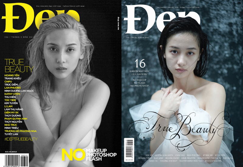 Bảo phụ nữ thời nay ra đường không tô ít son, dặm chút phấn, chẳng khác nào xúi họ chơi trò mạo hiểm. Ấy thế mà từng có thuở, Đẹp “xúi” thành công tới gần bốn chục ngôi sao “diện” mặt mộc lên hình. Và thành quả từ những buổi chụp hồi đó thì gần như mĩ mãn tuyệt đối, mặc cho đôi lông mày chưa thực vào hàng lối, quầng thâm lờ mờ dưới đôi mắt, vài rãnh nhăn nhỏ bé trên làn da. Thử chiêm ngưỡng dung mạo ban sơ của hai “nàng thơ” Jun Vũ và Võ Hoàng Yến trên trang bìa Đẹp, mấy ai dám bảo họ nhạt nhòa chỉ vì thiếu đi chút điểm trang?