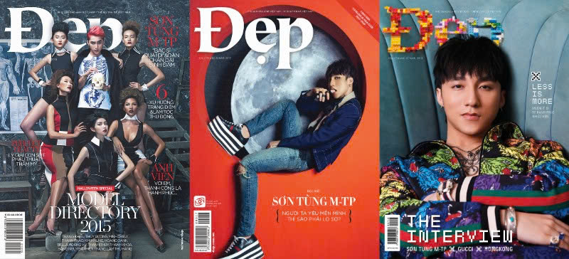 Năm 2015, khi vừa bứt lên từ tầng hầm underground và bước chân vào địa hạt mainstream, Sơn Tùng M-TP bỏ túi cho mình chiếc bìa “Model Directory” tháng 10 – một trong những số báo đặc biệt trong năm của Đẹp – đưa anh “đặc cách” đứng giữa dàn mẫu đắt giá gồm Minh Triệu, Trang Khiếu, Thùy Dương, Hoàng Oanh và Kim Nhung.