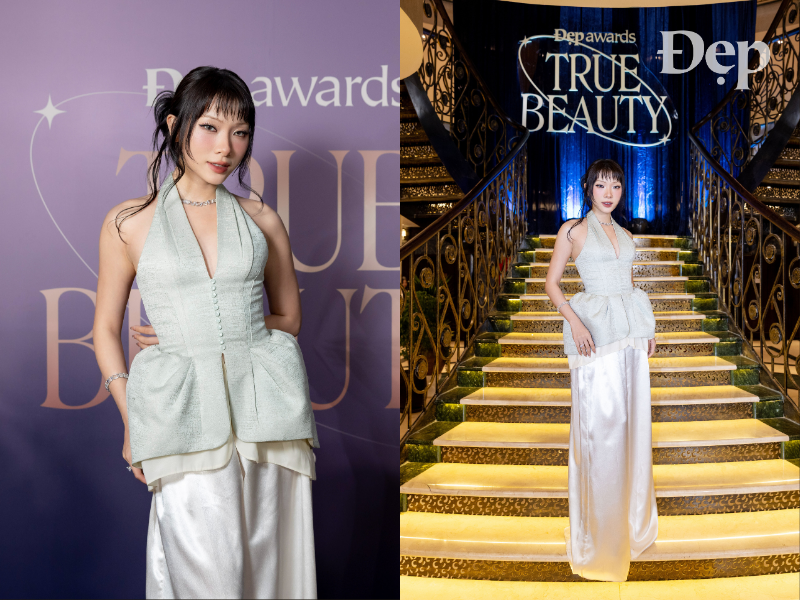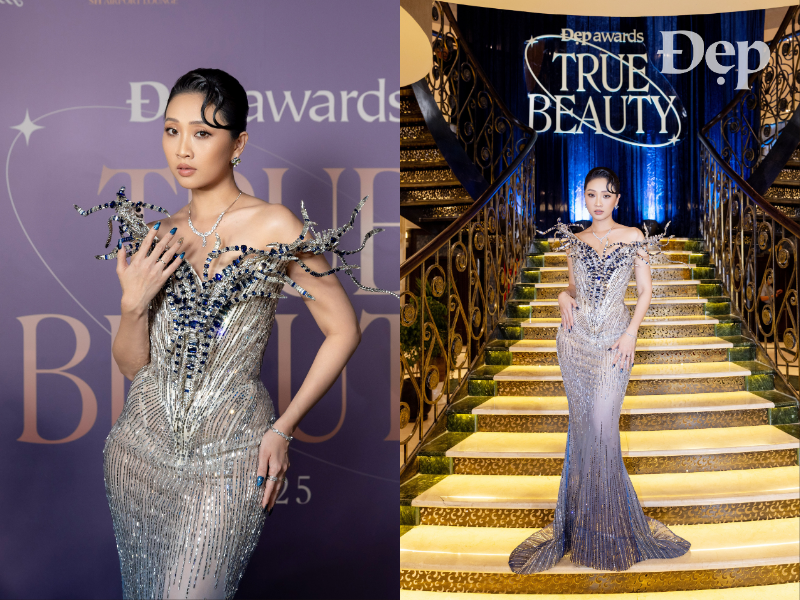 “Pretty Lady” Thanh Thủy giải nghĩa “vẻ đẹp đích thực” với vẻ đẹp trong trẻo, toát lên từ nội lực bên trong. Vẻ đẹp đó được nâng niu bởi chiếc đầm trắng ngà được NTK Lê Thanh Hòa cách điệu bằng thiết kế trễ vai dày dặn, cùng chi tiết corset ôm trọn vòng eo thon thả. Cuối cùng, những mắt xích kết nối cảm xúc của Tiffany & Co. HardWear hoàn thiện vẻ đẹp duyên dáng của “Pretty Lady” Thanh Thủy.“Men We Love” (S)TRONG Trọng Hiếu xuất hiện bảnh bao trong bộ suit cách tân từ thương hiệu Ricmad.studio và trang sức Cartier.Trong thiết kế đầm quây ánh kim ôm sát thấm đẫm hơi thở opera cổ điển của NTK Võ Tiến Đạt, điểm xuyết chiếc thắt lưng thắt nơ, găng tay đen dài và trang sức LUALA, ca sĩ Hương Tràm như bước ra từ một khung hình điện ảnh xưa tại Đẹp Awards 2025.Người bạn lâu năm của Đẹp – Hoa hậu Nguyễn Cao Kỳ Duyên xuất hiện nổi bật trong sắc đỏ quyền lực, với chiếc đầm ôm gọn, điểm nhấn là chiếc đồng hồ Franck Muller.Cũng chọn trang sức HardWear by Tiffany làm điểm nhấn, “Rising Star” Đoàn Thiên Ân mang đến sắc thái cá tính với mái tóc pixie ngắn, cùng chiếc đầm đen dạ tiệc đến từ NTK Đỗ Long với phần trên ôm sát và chân váy bất đối xứng.Bước lên chuyến du thuyền trong chiếc đầm đen của LESPOIR, Hoa hậu Lương Thùy Linh khéo léo khoe sắc vóc đằm thắm pha chút kiêu hãnh, được điểm xuyến bởi trang sức IJC.2025 quả là năm mang nhiều dư vị ngọt ngào với “The Singer” Hòa Minzy, và điều đó được cảm nhận rõ ràng qua thiết kế sắc hồng ánh nude được cô lựa chọn tại Đẹp Awards 2025. Thiết kế đầm dạ hội trễ vai dáng dài, phần thân trên ôm gọn và thân váy buông rủ mềm mại.Giữa muôn vàn cách “vẻ đẹp đích thực” được cắt nghĩa, sự hiện diện của NSƯT Thành Lộc hiện lên như một điểm neo giàu xúc cảm. Anh là ký ức tuổi thơ, là người bậc tiền bối, là hình ảnh để nhiều thế hệ nghệ sĩ soi chiếu và học hỏi. Trong đêm tiệc, nam nghệ sĩ xuất hiện với thiết kế mang hơi thở truyền thống, được xử lý trên nền chất liệu dệt hoa văn chìm, giản dị nhưng hàm chứa chiều sâu thẩm mỹ.Giọng ca “Tái sinh” – Divo Tùng Dương chọn sắc đen quyền lực cho màn xuất hiện tại Đẹp Awards 2025. Thiết kế gồm áo blazer đệm vai vững chãi của Balmain phối cùng quần da tạo hiệu ứng đối lập tinh tế.Tại Đẹp Awards 2025, nhạc sĩ Nguyễn Văn Chung vừa đảm nhận vai trò trao giải hạng mục “New Waves”, vừa là chủ nhân của giải “The Outstanding Collaboration” cùng với ca sĩ Tùng Dương. Trong buổi vinh danh, anh lựa chọn bộ suit tông đen lịch lãm, gồm áo blazer viền ve đỏ phối cùng quần tây đen.NTK Đỗ Long lịch lãm trong bộ tuxedo ôm vừa vặn cơ thể đến từ thương hiệu Kim Bespoke.Tiếp nối các câu chuyện duy mỹ tại Đẹp Awards 2025, thiết kế phượng hoàng xanh từ NTK Lê Thanh Hòa giúp Đinh Ngọc Diệp tỏa sáng tựa đóa hoa kiêu sa. Nữ diễn viên sánh đôi cùng đạo diễn Victor Vũ trong bộ suit của Adam Store.Góp mặt tại không gian Đẹp Awards 2025 còn có cặp đôi diễn viên Quang Tuấn và Linh Phi. Chủ nhân của giải thưởng “The Actor” lựa chọn bộ suit lịch thiệp từ The Suits House, sóng đôi cùng bà xã trong thiết kế đầm dạ hội sắc trắng tối giảnÁo Gentle Sheep, quần và giày Louis Vuitton, cà vạt Prada kết hợp cùng trang sức Piaget chính là công thức được nam diễn viên Steven Nguyễn lựa chọn, đại diện cho một năm 2025 rực rỡ, thăng hoa và ngập tràn ánh sáng của một ngôi sao đang lên.Bóng hồng duy nhất trong cùng dàn diễn viên phim “Mưa Đỏ” nhận giải “The Dream-Team” Lê Hạ Ánh xuất hiện ngọt ngào trong thiết kế đầm ren xuyên thấu đến từ Montsand.Trong khi đó, nam diễn viên Đình Khang lựa chọn tông đen chủ đạo với chiếc blazer dáng ngắn cách điệu bằng họa tiết hình trái tim phủ đều trên nền vải tối.Là mảnh ghép cuối cùng của “Mưa Đỏ” xuất hiện tại Đẹp Awards 2025, diễn viên Lâm Thanh Nhã nổi bật với bộ suit đỏ rực từ MER.Trong lần thứ ba đồng hành cùng Đẹp Awards, người bạn thân thiết của Tạp chí Đẹp – MC Minh Xù “check-in” du thuyền trong bộ suit trắng ngà của Kim Bespoke với phom dáng may đo gọn gàng, điểm xuyến bởi chiếc sơ mi xanh bên trong tạo nên nhịp chuyển màu tinh tế.Song hành cùng Minh Xù, MC Liêu Hà Trinh chiếm lĩnh ánh nhìn cùng thiết kế đầm dạ hội dáng corset ôm sát. Phần thân trên được xử lý như một cấu trúc điêu khắc, đính kết đá ánh xanh – bạc tinh xảo, khéo léo khoe kỹ thuật dựng phom đặc trưng của NTK Nguyễn Tiến Truyển.“Chàng thơ” của Tạp chí Đẹp số 299, “Break-through” JSOL thể hiện khía cạnh không ngừng đổi mới như chính hành trình làm nghệ thuật của mình với bộ suit cách tân từ chất liệu denim của Dsquared2.Một thiết khác của Montsand xuất hiện tại thảm đỏ Đẹp Awards 2025 do “New Wave” Trâm Anh diện. Chiếc đầm hở lưng được hoàn thiện với phần cổ yếm, lớp lưới nud