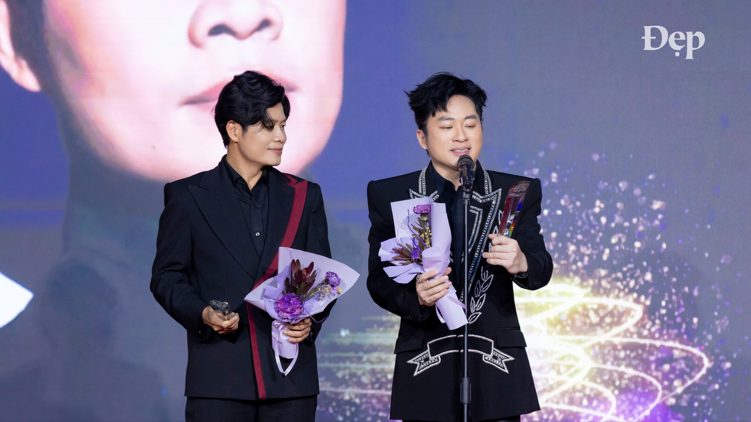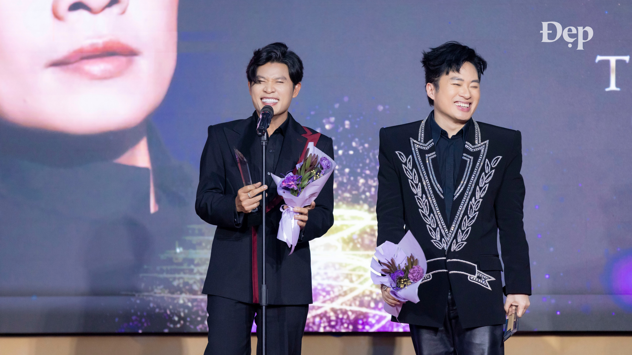 Nhạc sĩ Nguyễn Văn Chung tiếp lời: “Xin cảm ơn Tạp chí Đẹp và các khán giả đã yêu thương. Xin cảm ơn tất cả các anh chị em ca sĩ, đặc biệt là Tùng Dương, một người bạn ‘mới quen’ (cười). Vì nhờ có những ca sĩ như Dương mà những bài hát của Chung mới lan tỏa đến khán giả. Và chúng ta cùng lan tỏa tinh thần yêu nước, tinh thần tự hào dân tộc trong năm vừa qua. Xin cảm ơn tất cả mọi người”.