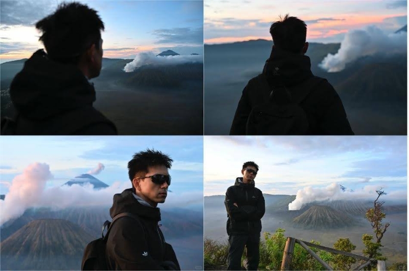 Bromo được Lý Hiện lựa chọn bởi sự tương phản rõ rệt trong cảnh quan. Những dải núi lửa xám gợi liên tưởng đến bề mặt mặt trăng, đối lập với thảm cỏ xanh và bầu trời rộng mở. Dù Bromo thường được khuyến nghị vào mùa khô từ tháng 4 đến tháng 10, chuyến đi cuối tháng 10 của anh cho thấy sự kiên nhẫn và khả năng thích nghi trước thời tiết thất thường – mưa kéo dài rồi bất ngờ nhường chỗ cho nắng sớm. Trong vòng chưa đầy 24 giờ, từ chuyến bay đến Surabaya buổi sáng hôm trước đến khi rời đi sáng hôm sau, Lý Hiện gần như không ngủ, nhưng vẫn giữ nhịp di chuyển ổn định. Với anh, khi đã đặt chân đến một điểm đến, cách tận hưởng trọn vẹn nhất vẫn là đi bộ đến cùng, một lựa chọn nhất quán trong mọi hành trình xê dịch.