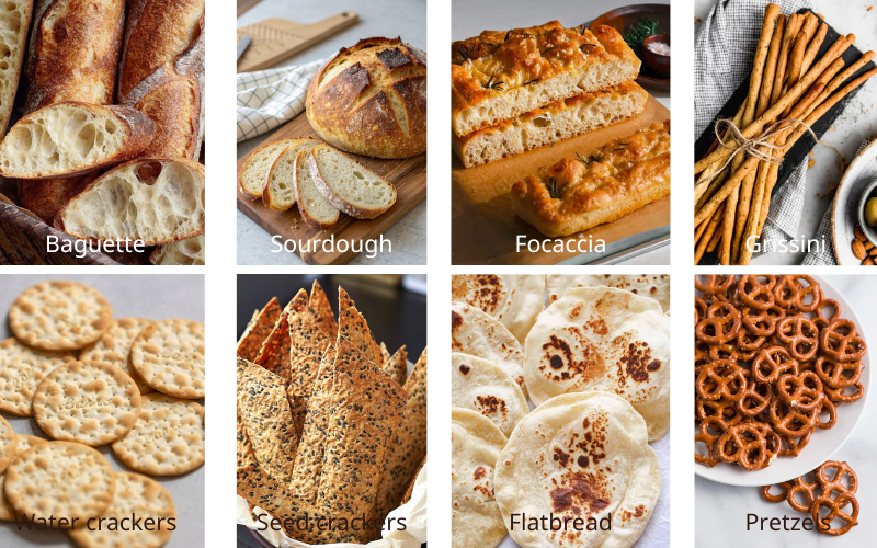 Việc kết hợp ít nhất hai loại tinh bột với kết cấu khác nhau sẽ giúp cheese board trở nên phong phú và dễ thưởng thức hơn.