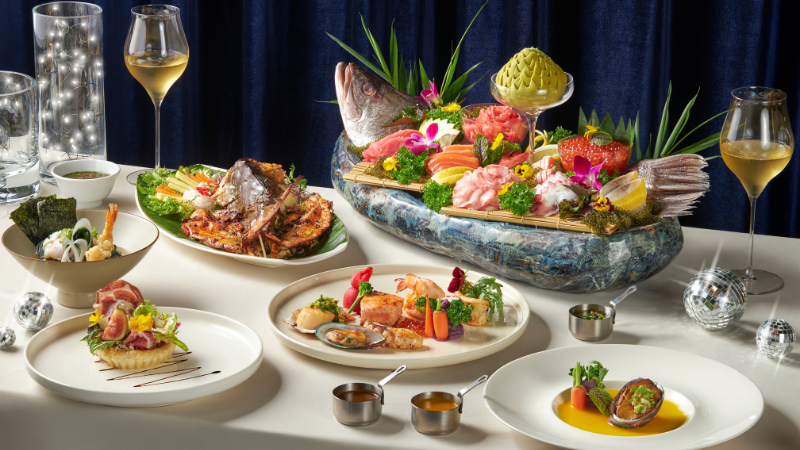 Thực đơn buffet quy tụ các món ăn quốc tế được Việt hóa tinh tế, nổi bật với hải sản thượng hạng, sushi, sashimi, phô mai Raclette kiểu Tây Ban Nha, sườn bò nướng Hàn Quốc, vịt quay, laksa, mì hoành thánh, cùng quầy nướng than hoa phục vụ thăn bò cao cấp, cá vược, sò điệp và tôm cỡ lớn. Mỗi thực khách còn được phục vụ tôm hùm nướng phô mai sốt rượu vang trắng, tạo nên điểm nhấn trọn vẹn cho bữa tiệc cuối năm. Sau bữa tối, không khí lễ hội tiếp tục được đẩy cao tại Garbo Gastro Bar, nơi khoảnh khắc countdown trở nên sôi động với âm nhạc rộn ràng và những lời chúc năm mới, khép lại đêm giao thừa trong cảm xúc hứng khởi và đáng nhớ.