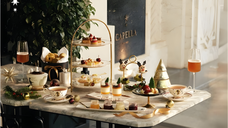 Capella Hanoi mở màn mùa lễ hội bằng những hình ảnh rất Hà Nội: ông già Noel xuất hiện trên chiếc xích-lô truyền thống, mang theo không khí ấm áp và chút duyên ngầm của thành phố cổ kính. Trong không gian Diva’s Lounge và Hudson Rooms, trà chiều mùa lễ hội được kiến tạo như một lời chào dịu dàng của thành phố cổ kính, nơi thực khách bắt đầu buổi chiều bằng những chiếc bánh ngọt độc quyền, các món mặn tinh tế và lựa chọn trà Diva’s hoặc rượu vang nóng, vừa đủ để khơi mở cảm xúc.