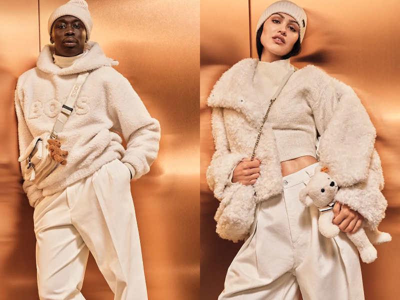 Bộ sưu tập ready-to-wear của BOSS trải dài cho nam, nữ và trẻ em, với bảng màu ấm áp từ kem đến nâu, sử dụng chất liệu mô phỏng lớp lông mềm mại của gấu Teddy. Những thiết kế nổi bật bao gồm áo khoác kiểu Teddy, áo khoác ngoài, hoodie cùng phụ kiện như mũ và găng tay. Bên cạnh đó, các biểu tượng kinh điển như túi Ariell và giày Gary được nâng cấp với chi tiết và chất liệu mới, tạo nét tươi mới mà vẫn giữ được tinh thần truyền thống của thương hiệu. Chiến dịch còn mở rộng sang không gian kỹ thuật số với 22 video AI ngắn và Lens AR trên Snapchat, thể hiện khả năng kết hợp giữa di sản thủ công và công nghệ tiên tiến, biến mùa lễ hội thành một trải nghiệm đa chiều, vừa hiện thực vừa tưởng tượng.