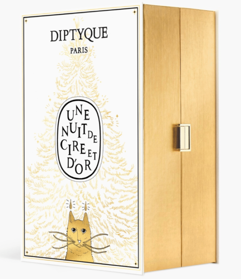 Nếu Kiehl’s mang đến niềm vui hiện đại, thì Diptyque lại dẫn ta lạc vào thế giới thơ mộng, nơi mùa đông được viết nên bằng ánh nến và mùi hương. Lịch mùa Vọng năm nay của thương hiệu nước hoa danh tiếng nước Pháp là một cuốn chuyện nghệ thuật sống động, lấy bối cảnh tại tiệm sách cổ ở Saint-Germain-des-Prés. Ở đó, chú mèo Archibald cùng ông chủ tiệm tình cờ khám phá quả thông phát sáng trong sáp nến vàng, mở ra chuyến phiêu lưu huyền ảo đầy mê hoặc giữa hương thơm và ánh sáng.