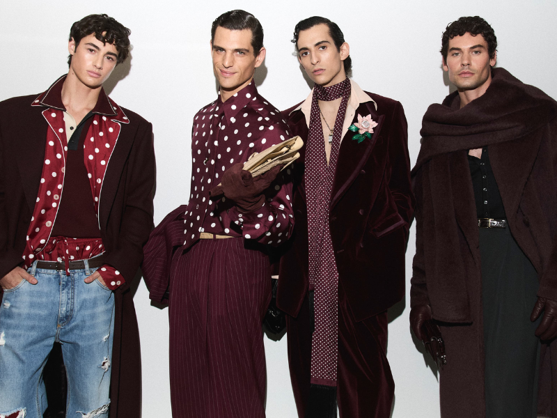 Còn ở Milan, Dsquared2 đẩy công thức color-block và chủ nghĩa tối đa lên đến cực hạn trong các thiết kế lấy cảm hứng từ đồng phục trượt tuyết, khúc côn cầu,… biến sàn diễn trở thành sàn thi đấu Thế vận hội mùa đông. Song song đó, phong cách preppy trở thành trục thị giác cho phép Ralph Lauren mở rộng bảng màu quen thuộc. Áo phao cam, gile vàng chanh hay polo tay dài sọc cam và tím hoa cà xuất hiện giữa các tông đất, denim bạc màu, những tham chiếu quân đội và cao bồi miền Viễn Tây. Dolce & Gabbana với bộ sưu tập “The Portrait of Man” còn dứt khoác đưa sắc hồng chấm bi và họa tiết da beo vào việc diễn giải lối sống “la dolce vita” (tạm dịch: cuộc sống ngọt ngào). Tựu trung, sự đan xen đó cho thấy sự phong phú trong thẩm mỹ thời trang nam đương đại.
