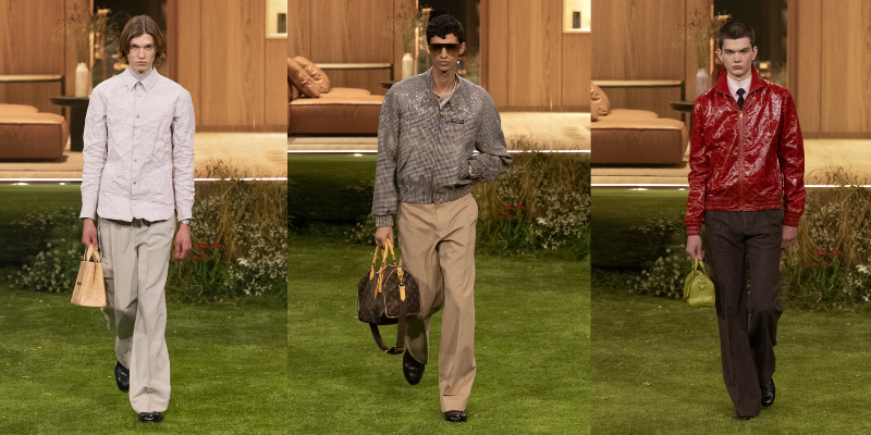 Hay tại Paris, người ta lại bắt gặp các mã di sản của Louis Vuitton được đặt lên áo ngoài bằng lụa và vải chambray phản quang. Cùng lúc đó, vải nhôm xuất hiện từ áo sơ mi đến áo khoác ngoài, mở ra một mệnh đề về tương lai mà Pharrell Williams gieo vào không gian Le Jardin d’Acclimatation.