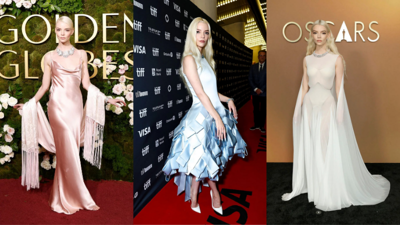Năm 2025, phong cách của Anya Taylor-Joy liên tục chuyển dịch để phản ánh bối cảnh và cảm xúc của từng lần xuất hiện. Tại Quả Cầu Vàng, chiếc đầm lụa hai dây hồng phấn của Dior gợi lên vẻ nữ tính được tiết chế; trong khi ở lễ trao giải Governors, thiết kế áo choàng trắng xuyên thấu kết hợp corset của Maison Margiela Haute Couture lại mang đến hình ảnh gần như siêu thực. Anya cũng chủ động thử nghiệm những cấu trúc mang tính kiến trúc và cảm hứng tương lai, tiêu biểu là chiếc đầm lụa satin màu xanh với phom dáng dựng khối của Dior tại Liên hoan phim Toronto 2025. Những lựa chọn này cho thấy cô tiếp cận thời trang như một thực hành sáng tạo, sẵn sàng phá vỡ khuôn mẫu để xây dựng câu chuyện cá nhân. Dù một số tạo hình mang tính nghệ thuật cao và không hướng đến sự dễ tiếp cận, chính thần thái và khả năng hiện thực hóa trang phục đã giúp Anya vượt qua ranh giới “mặc đẹp”.