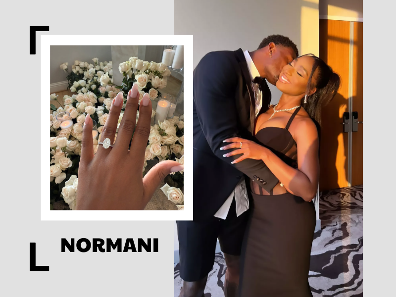 Chiếc nhẫn đính hôn của Normani được Jason of Beverly Hills thực hiện sau 3 tuần làm việc trực tiếp cùng vị hôn phu DK Metcalf. Thiết kế xoay quanh viên kim cương chủ dáng bầu dục, được ước tính nặng khoảng 4-8 carat. Viên đá được đặt trên khung bạch kim với chấu nâng cao, cho phép ánh sáng đi vào tối đa và làm rõ đường cắt khi quan sát từ nhiều góc độ. Cách xử lý này hướng đến một chiếc nhẫn có khả năng giữ giá trị theo thời gian, phù hợp với mong muốn của Metcalf về một thiết kế có thể đồng hành lâu dài, không phụ thuộc vào xu hướng ngắn hạn.