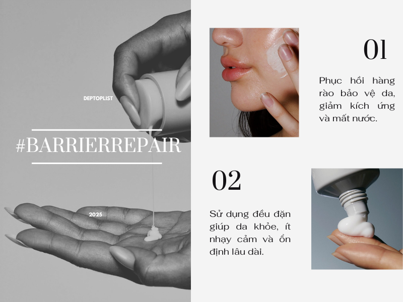 Để nuôi dưỡng một hàng rào da khỏe, người dùng không chỉ cần thói quen chăm da đều đặn mà còn phải ưu tiên những sản phẩm giúp củng cố và “vá lại” lớp màng lipid tự nhiên. Các loại serum phục hồi chứa ceramide, peptide hay prebiotics trở thành lựa chọn hàng đầu, bởi chúng giúp lấp đầy những khoảng trống li ti trên bề mặt da, giữ ẩm sâu và cải thiện đáng kể khả năng tự tái tạo của da. Kết hợp cùng các dòng kem dưỡng có kết cấu êm mượt, giàu dưỡng chất, làn da được khóa ẩm tốt hơn, mềm mại hơn và bớt nhạy cảm trước những tác động từ môi trường.