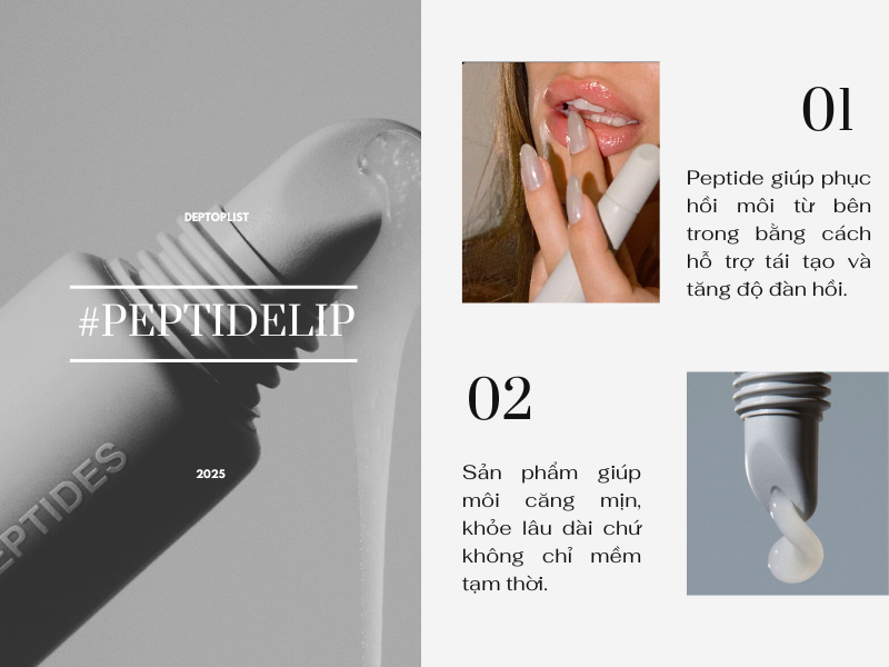 Dưỡng môi bằng peptide (Peptide lip treatments) đang nổi lên như “nhân vật mới” đầy triển vọng trong thế giới làm đẹp. Xu hướng này thu hút sự chú ý bởi hiệu quả nuôi dưỡng từ gốc: không chỉ khóa ẩm bề mặt mà còn hỗ trợ tái cấu trúc môi theo thời gian. Nhờ các phức hợp peptide thông minh, sản phẩm hoạt động như những “tín hiệu phục hồi” giúp đôi môi trông căng đầy hơn, cải thiện rãnh môi khô và mang lại vẻ mịn mượt tự nhiên ngay cả khi để trần.