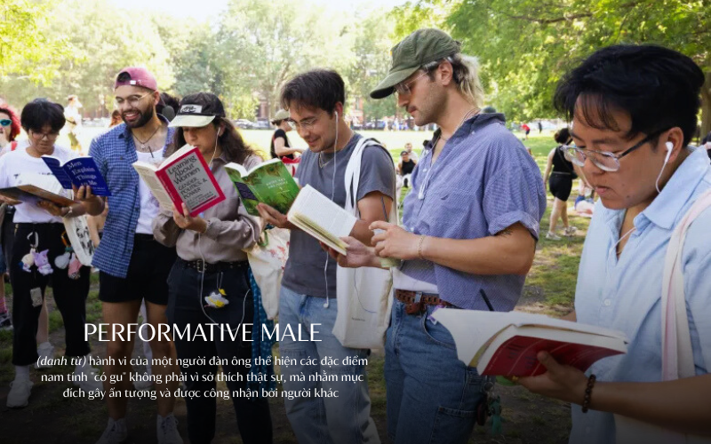 Chỉ cần nghe cụm từ “performative male”, nhiều người lập tức hình dung ra một chàng trai đeo túi tote treo keychain labubu, tay cầm cốc matcha, cầm trên tay những quyển sách viết về nữ quyền và đeo chiếc tai nghe dây như một phụ kiện thời trang. “Performative male” dùng để chỉ những biểu hiện, hành vi của một người đàn ông thể hiện các đặc điểm nam tính hoặc “có gu” không phải vì sở thích thật sự, mà nhằm mục đích gây ấn tượng và được công nhận bởi người khác. Khi ấy, nam tính được trình diễn ra ngoài nhằm xây dựng một hình mẫu đàn ông đương đại, thử thách các chuẩn mực về tính nam truyền thống.