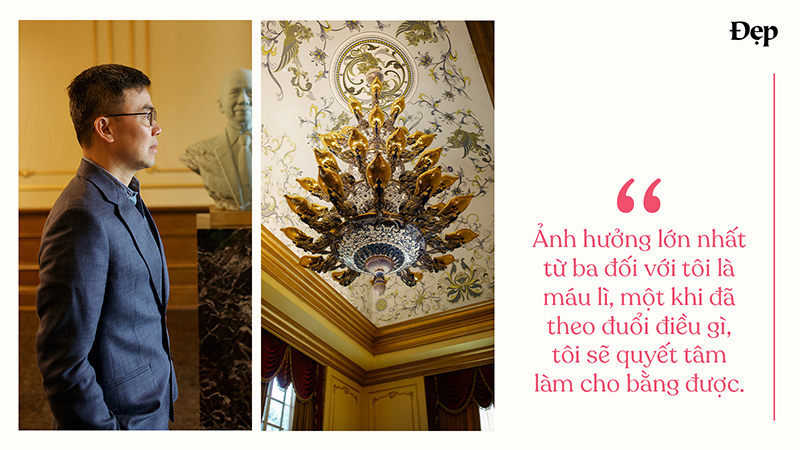 Ảnh hưởng lớn nhất từ ba đối với tôi là máu lì, một khi đã theo đuổi điều gì, tôi sẽ quyết tâm làm cho bằng được. Tinh thần này thể hiện rõ không chỉ với Minh Long mà còn trong những môn thể thao tôi theo đuổi hay những dự án riêng, chẳng hạn dự án về kem. Dù lỗ suốt 15 năm qua nhưng không vì thế mà tôi giảm chất lượng hoặc