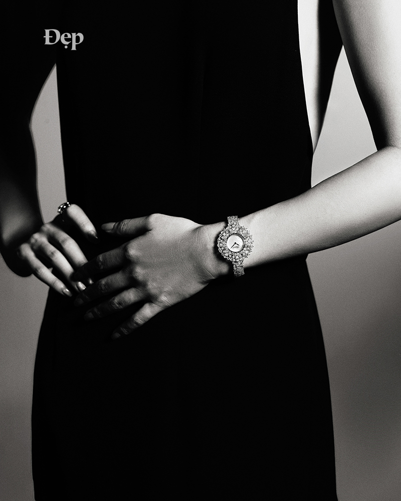 Chopard tôn vinh sự bất toàn của tự nhiên. Mỗi mặt số đồng hồ là một cấu trúc vân đá riêng biệt được vẽ bởi bàn tay tạo hóa. Đó tựa như lời nhắc nhở: không có hai khoảnh khắc nào giống nhau, cũng không có hai cuộc đời nào trùng lặp.Chopard và Bùi Lan Hương – ánh sáng từ những viên kim cương gặp gỡ sự lấp lánh của nội tại để dệt nên những khoảnh khắc rực rỡ nhất.Bao quanh mỗi mặt số là một vương miện kim cương được nạm theo kỹ thuật crown-setting do Karl Scheufele phát triển. Giảm thiểu phần kim loại lộ diện, các chấu chữ V tối đa hóa độ phản quang của tuyệt tác trang sức nơi cổ tay.